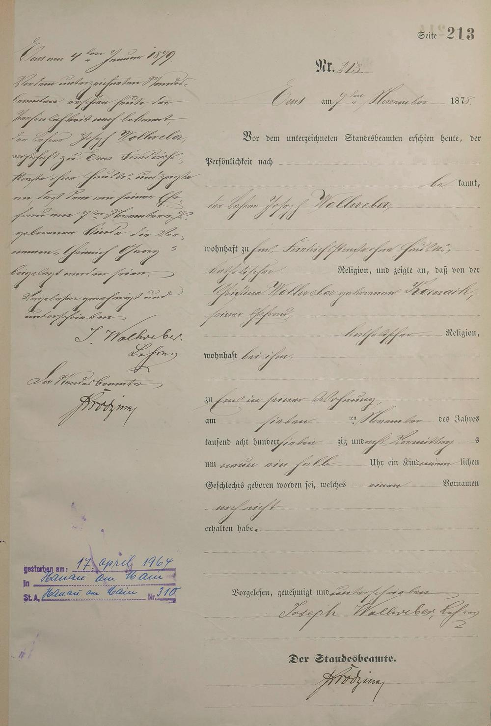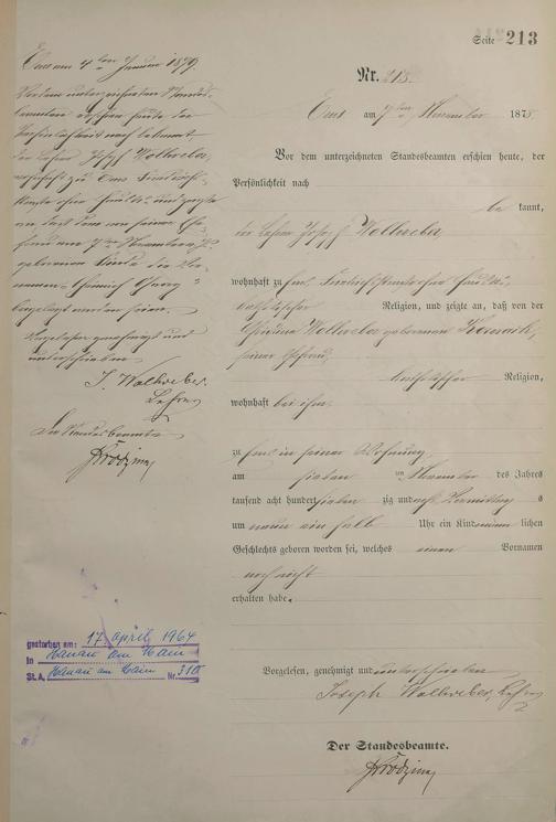 1254: Geburtsregister 1878