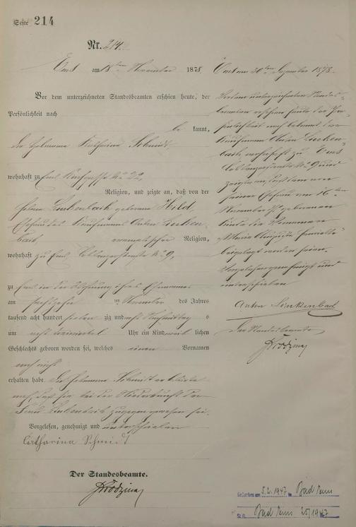 Geburtsregister 1878