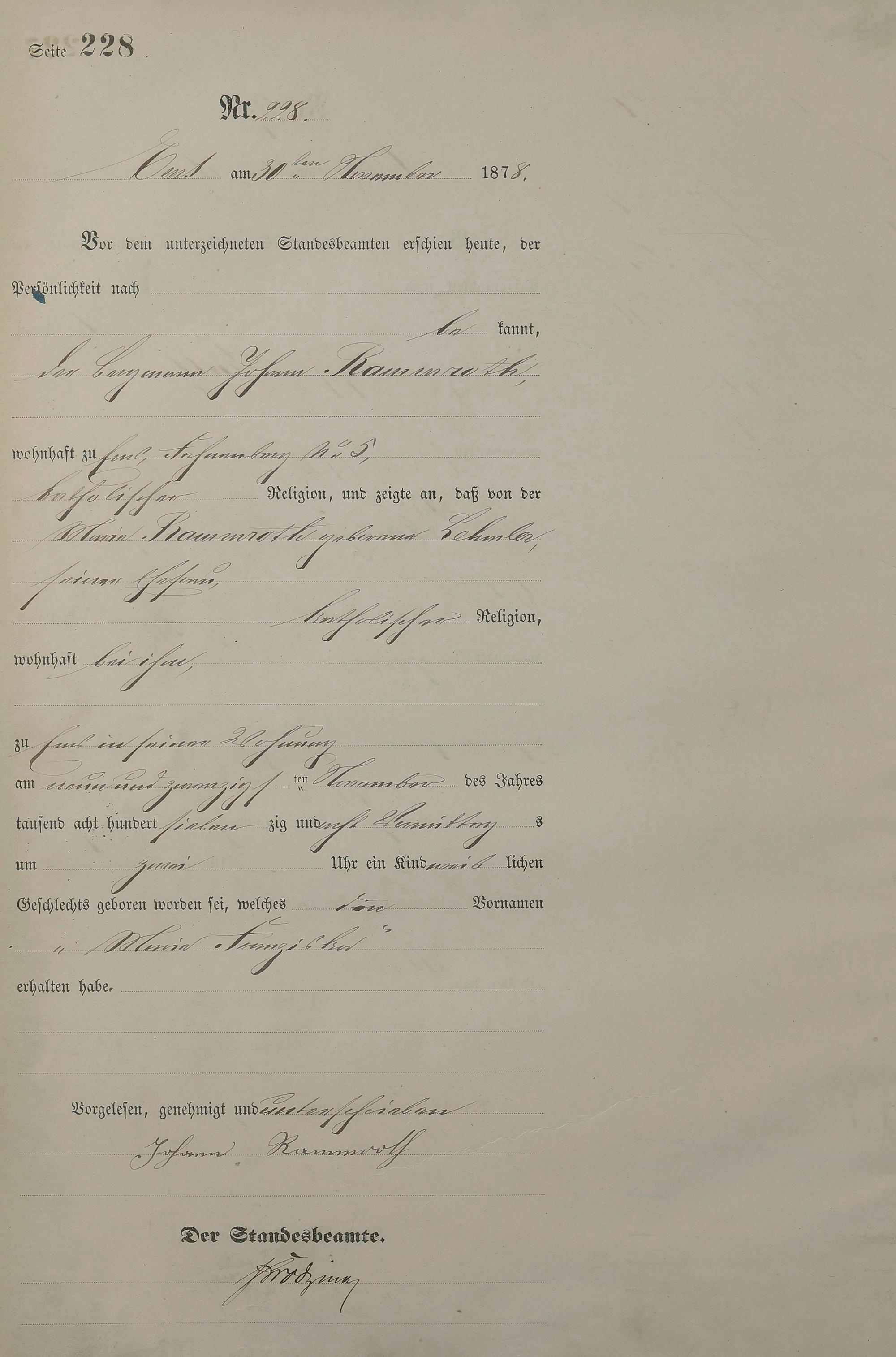 Geburtsregister 1878