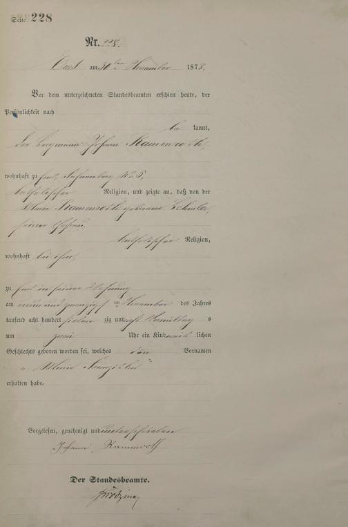 1254: Geburtsregister 1878