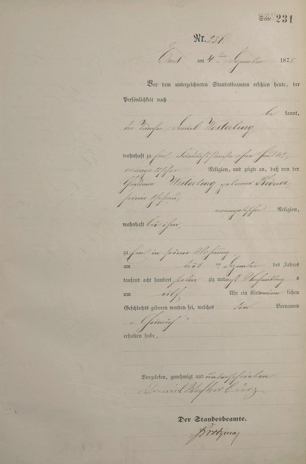 Geburtsregister 1878