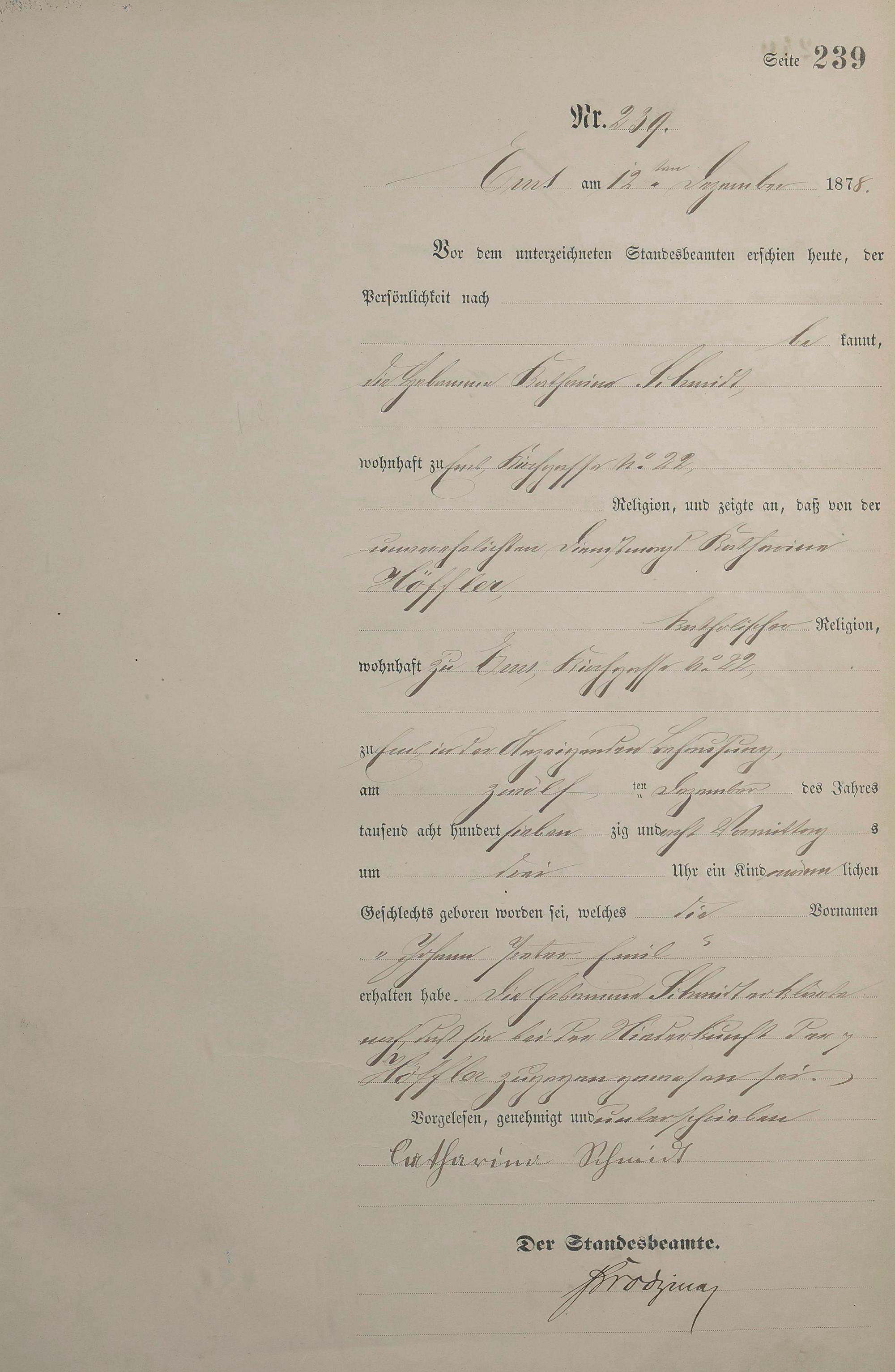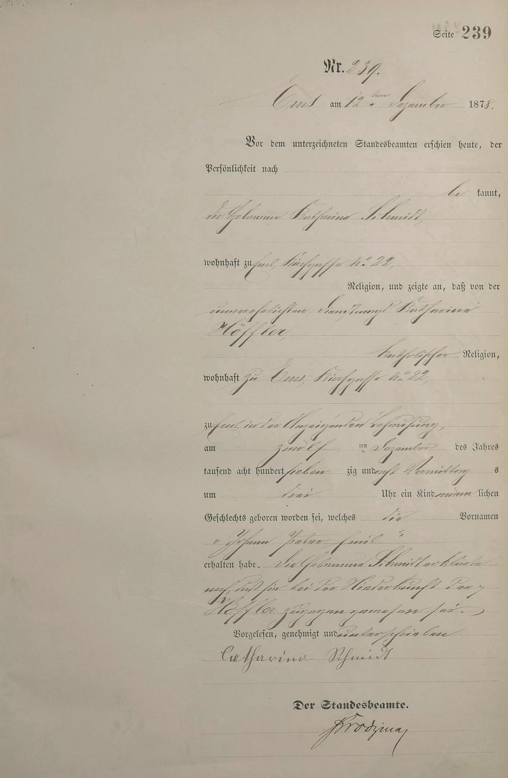 1254: Geburtsregister 1878