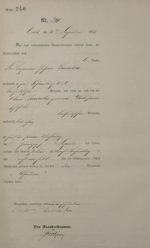 1254: Geburtsregister 1878