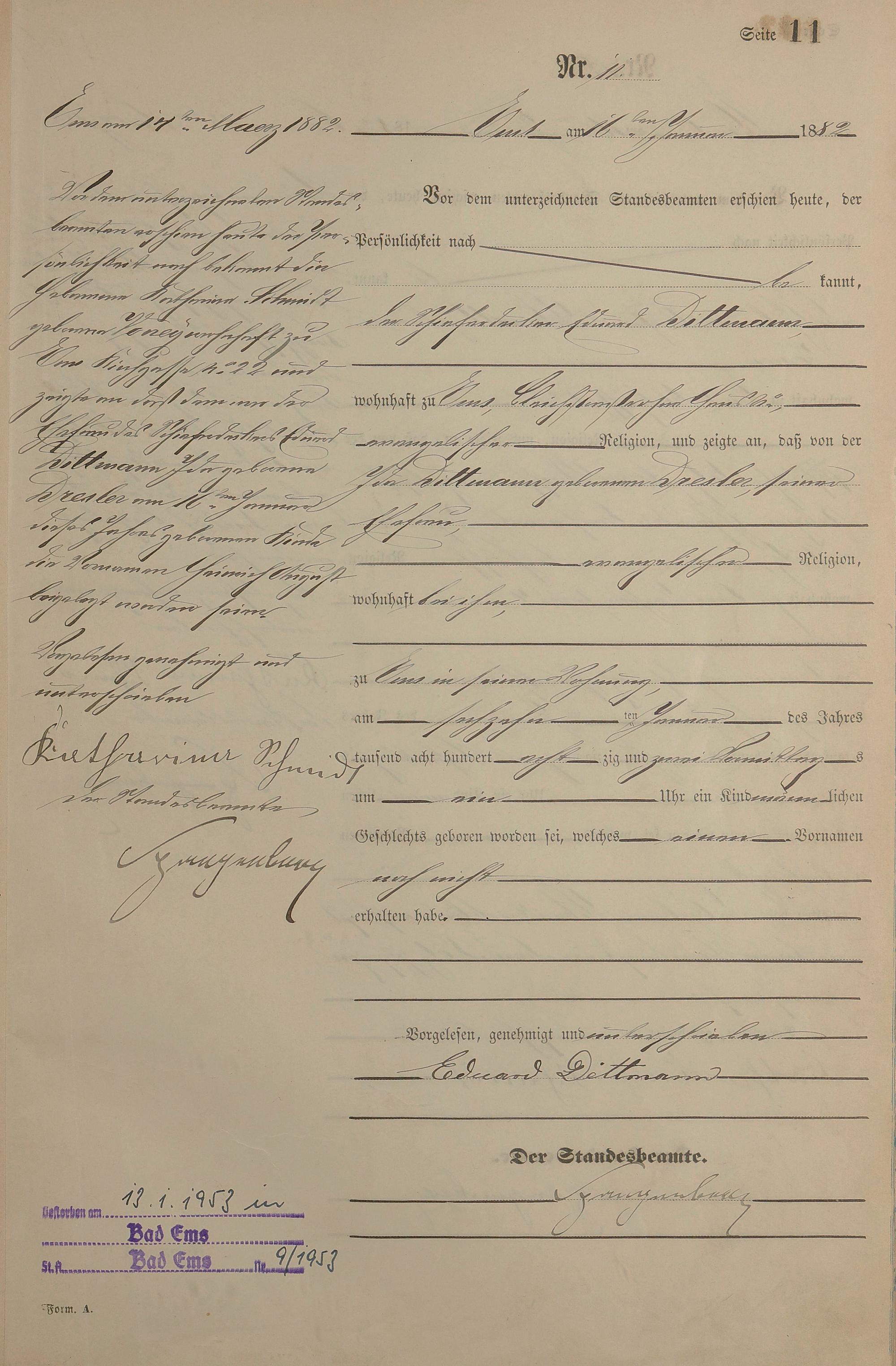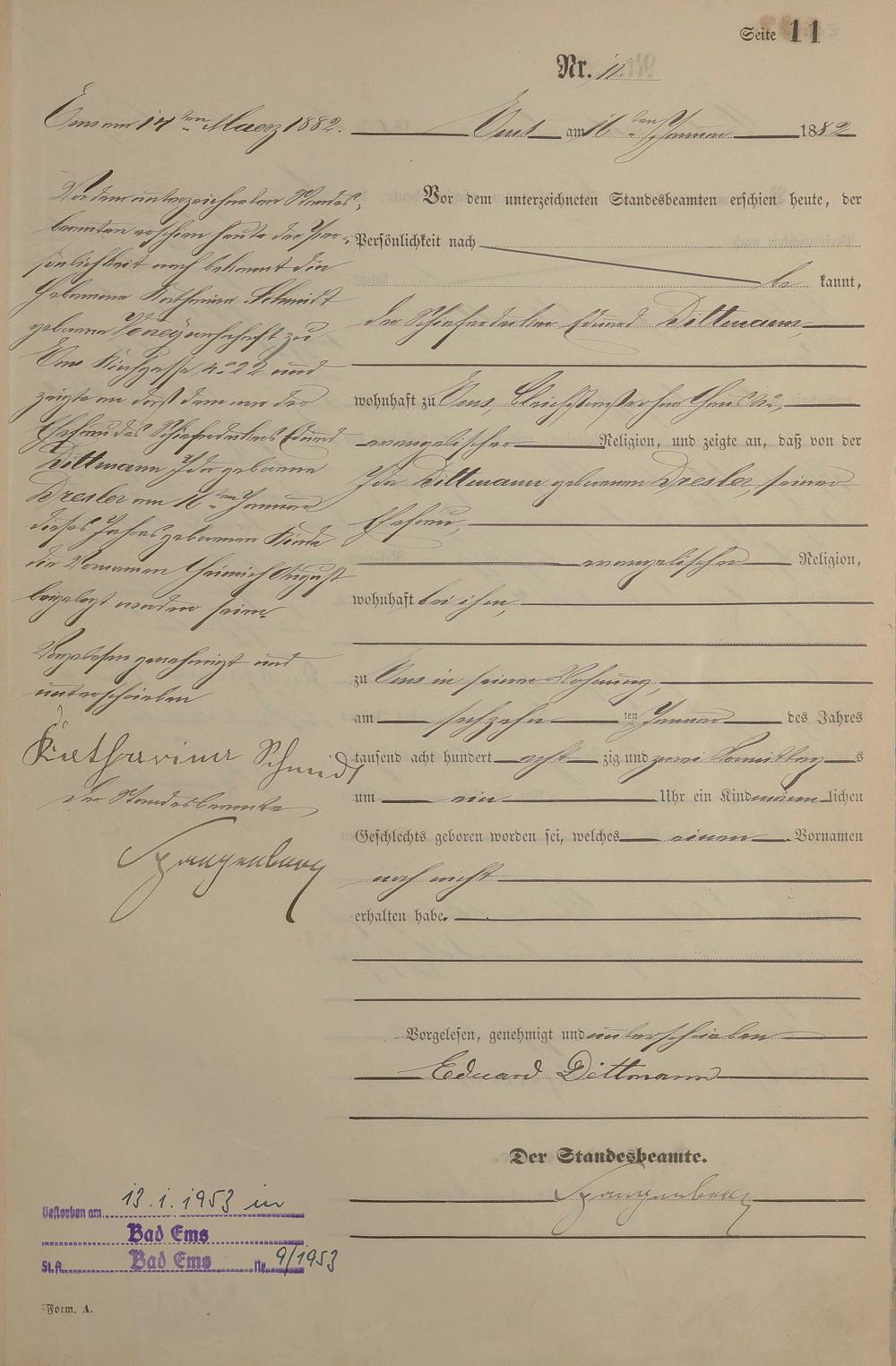 Geburtsregister 1882