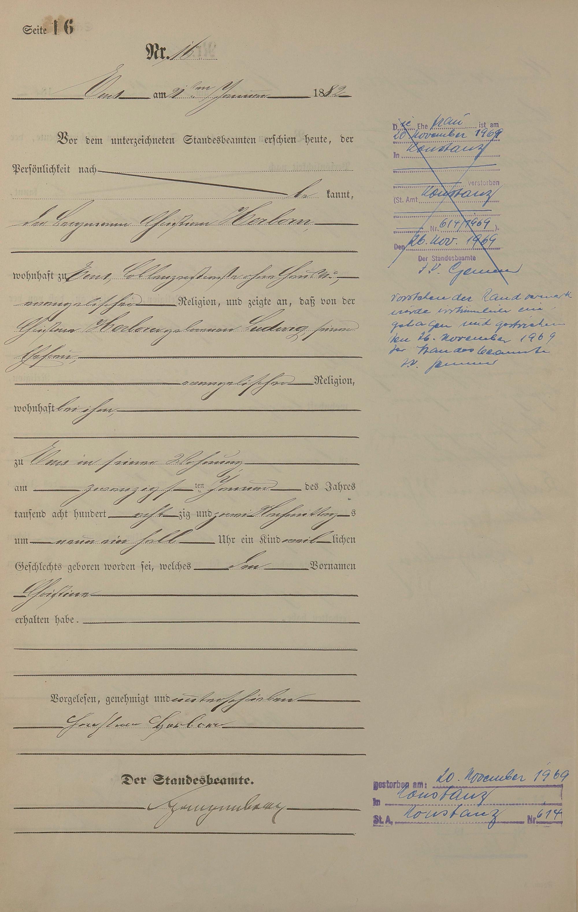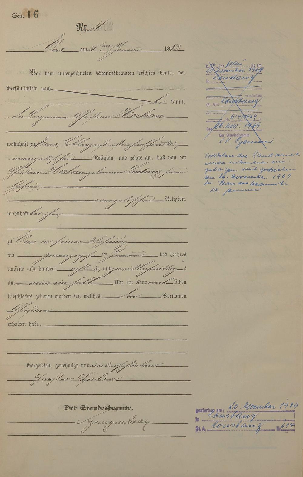 Geburtsregister 1882