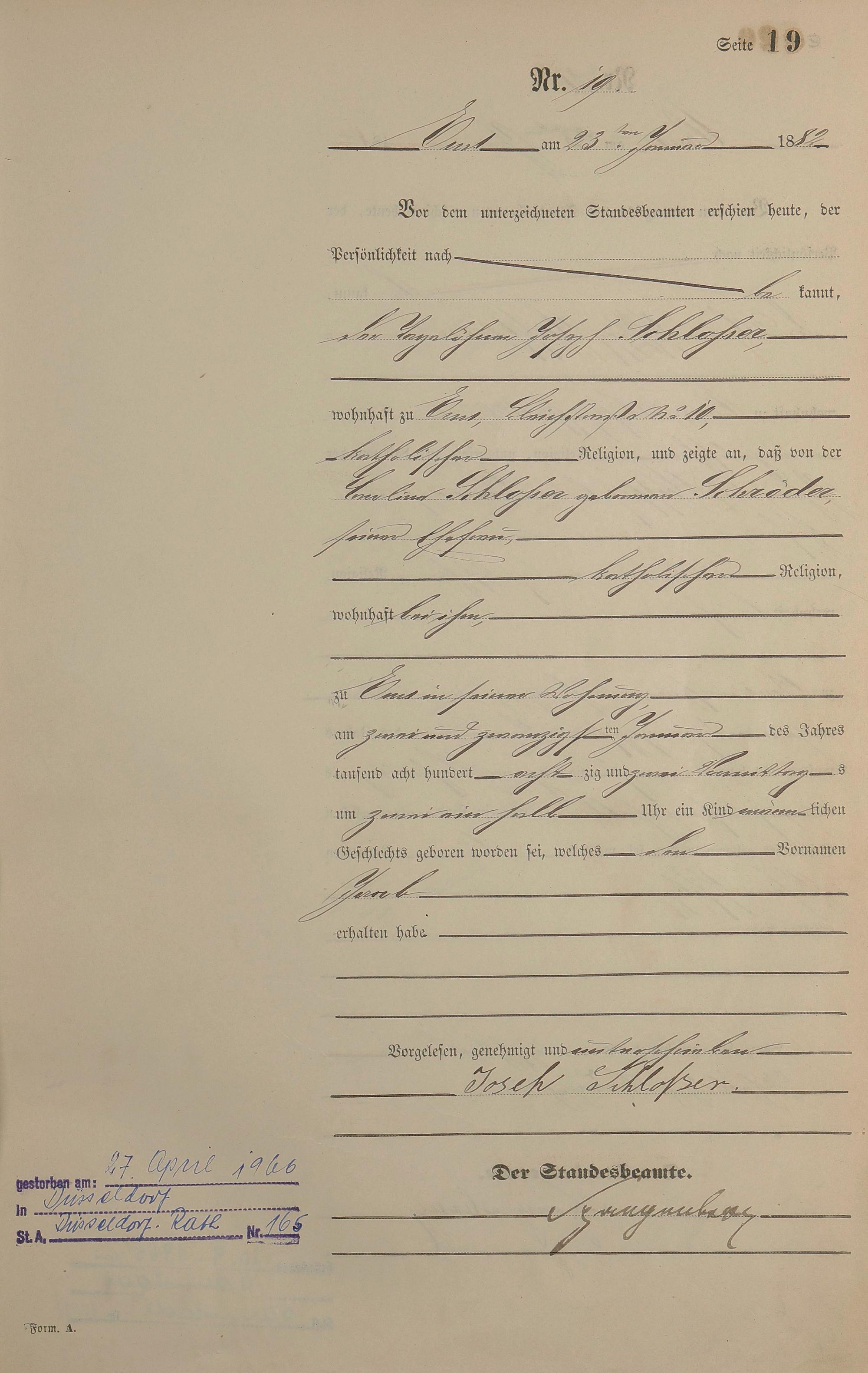 Geburtsregister 1882