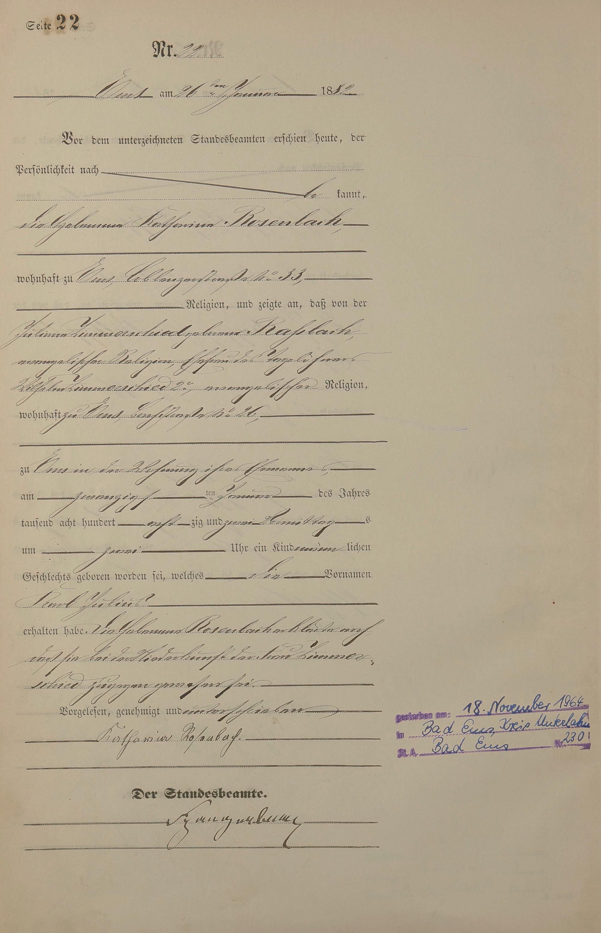 Geburtsregister 1882