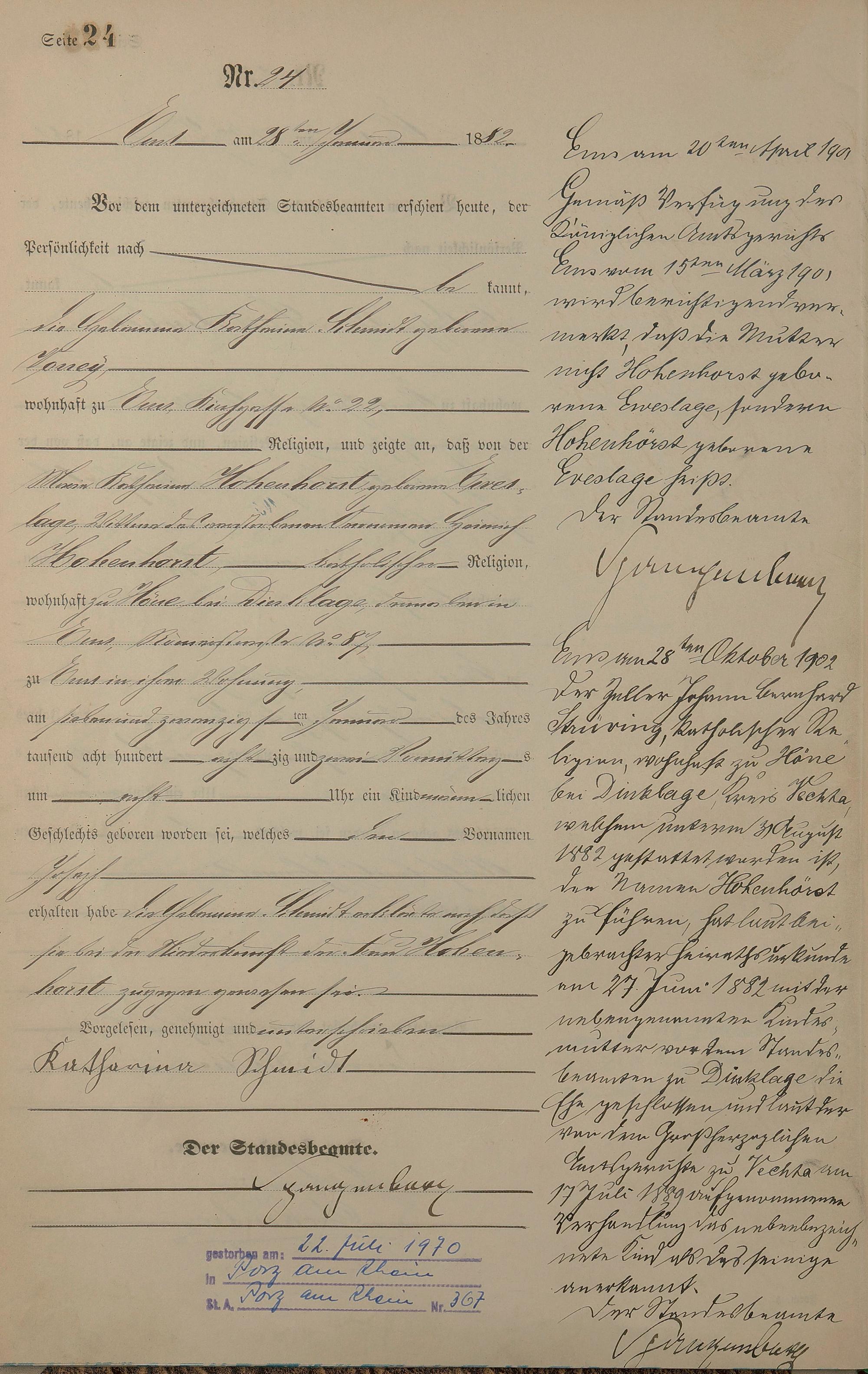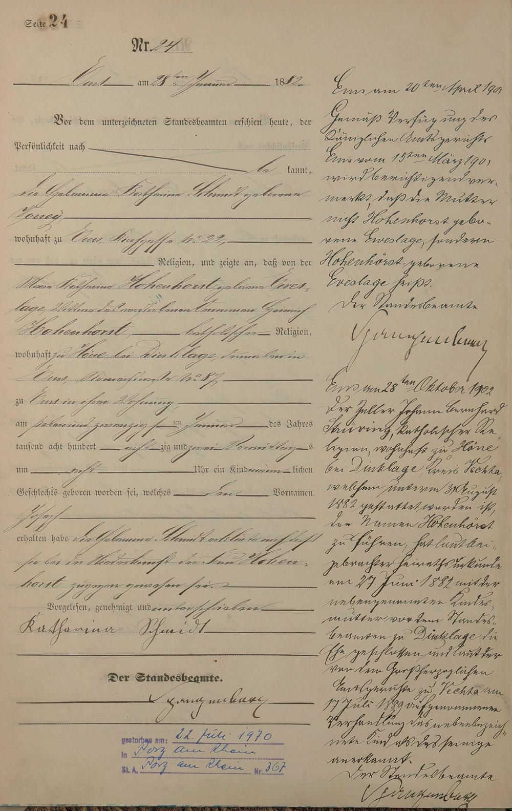 Geburtsregister 1882