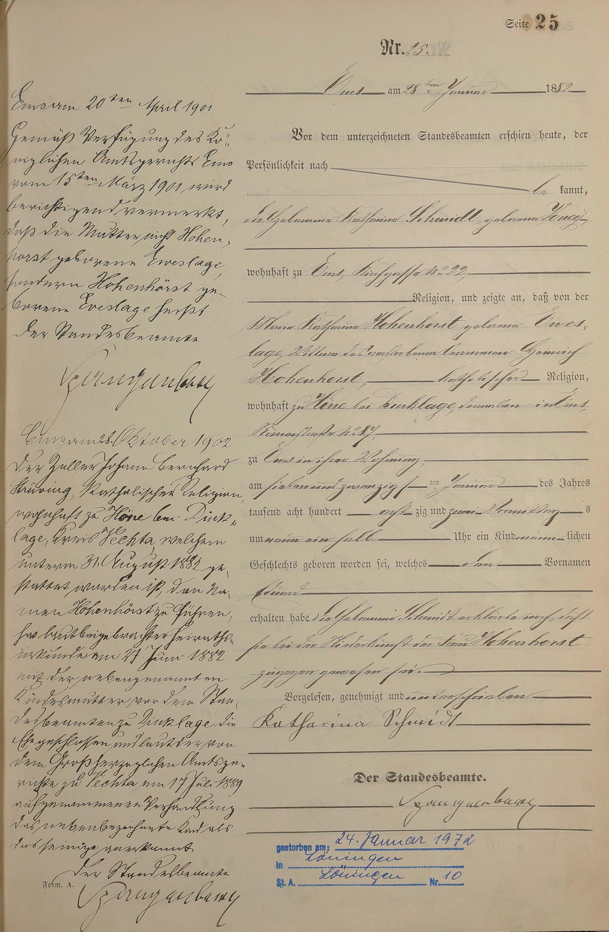Geburtsregister 1882