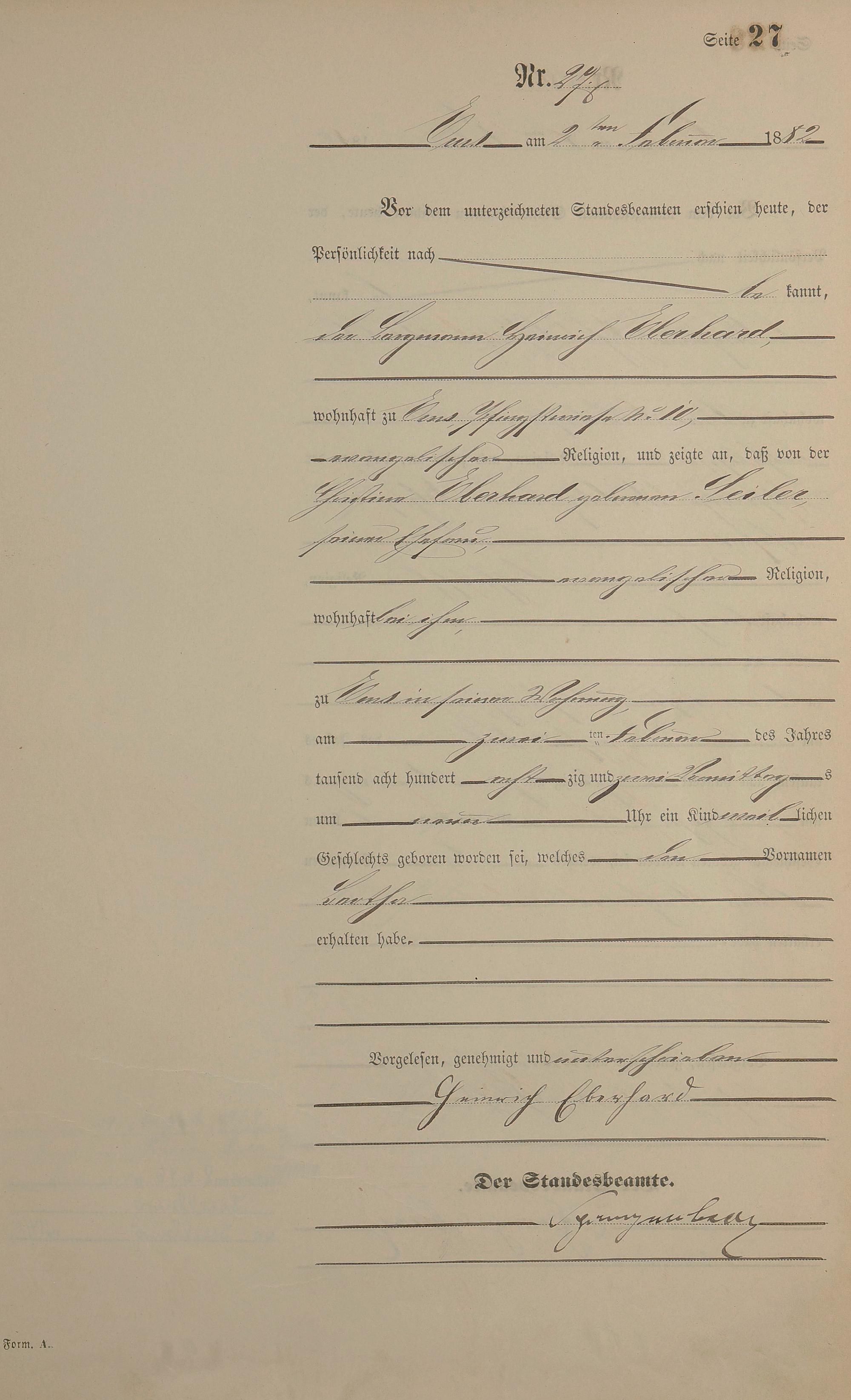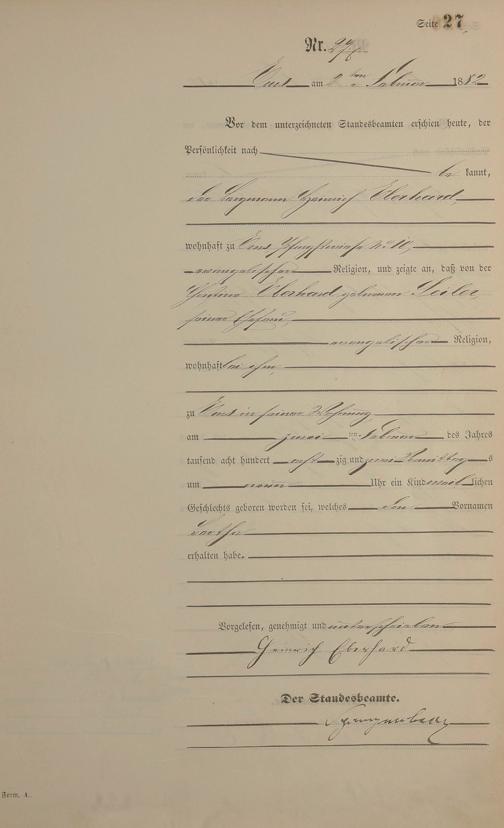 Geburtsregister 1882