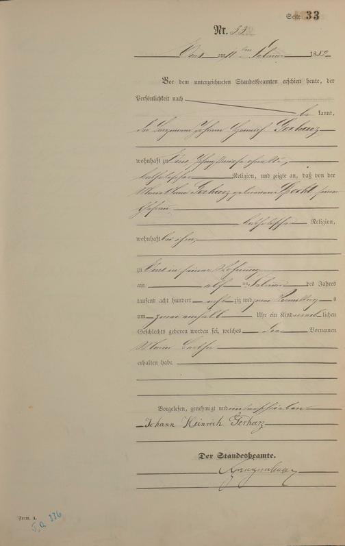 Geburtsregister 1882