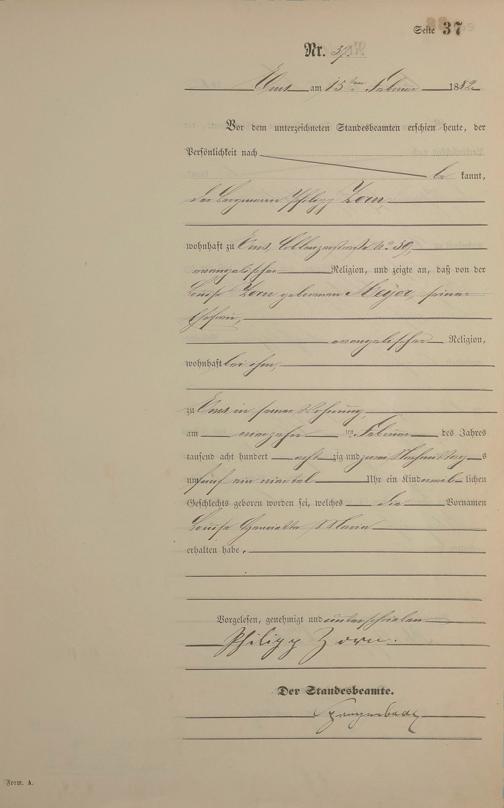 Geburtsregister 1882