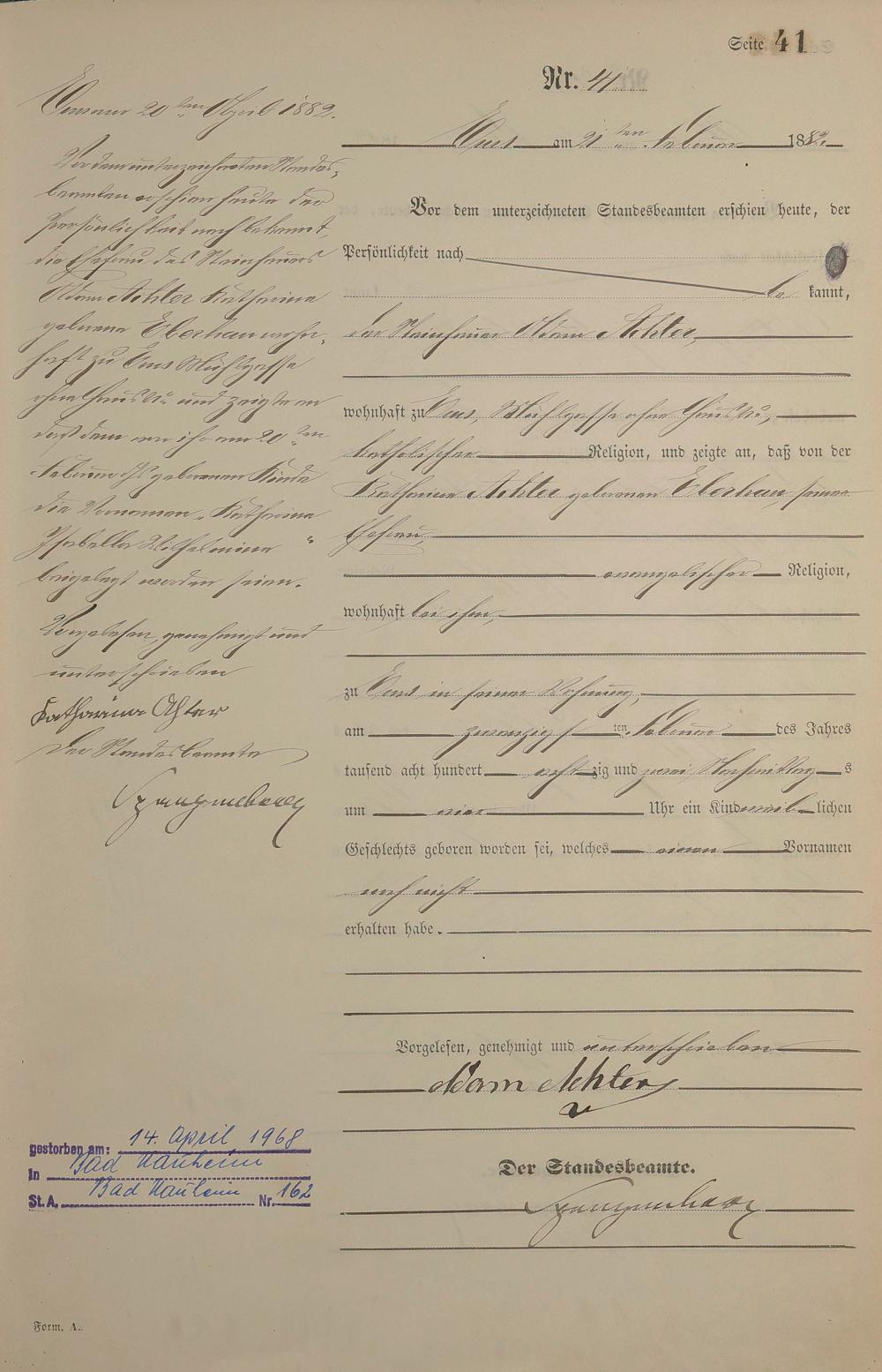 Geburtsregister 1882