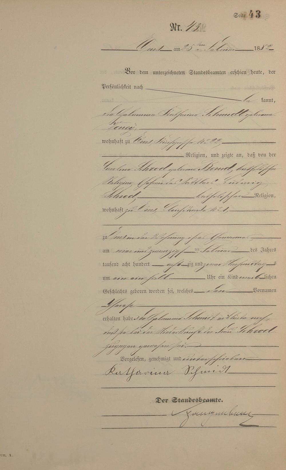 Geburtsregister 1882