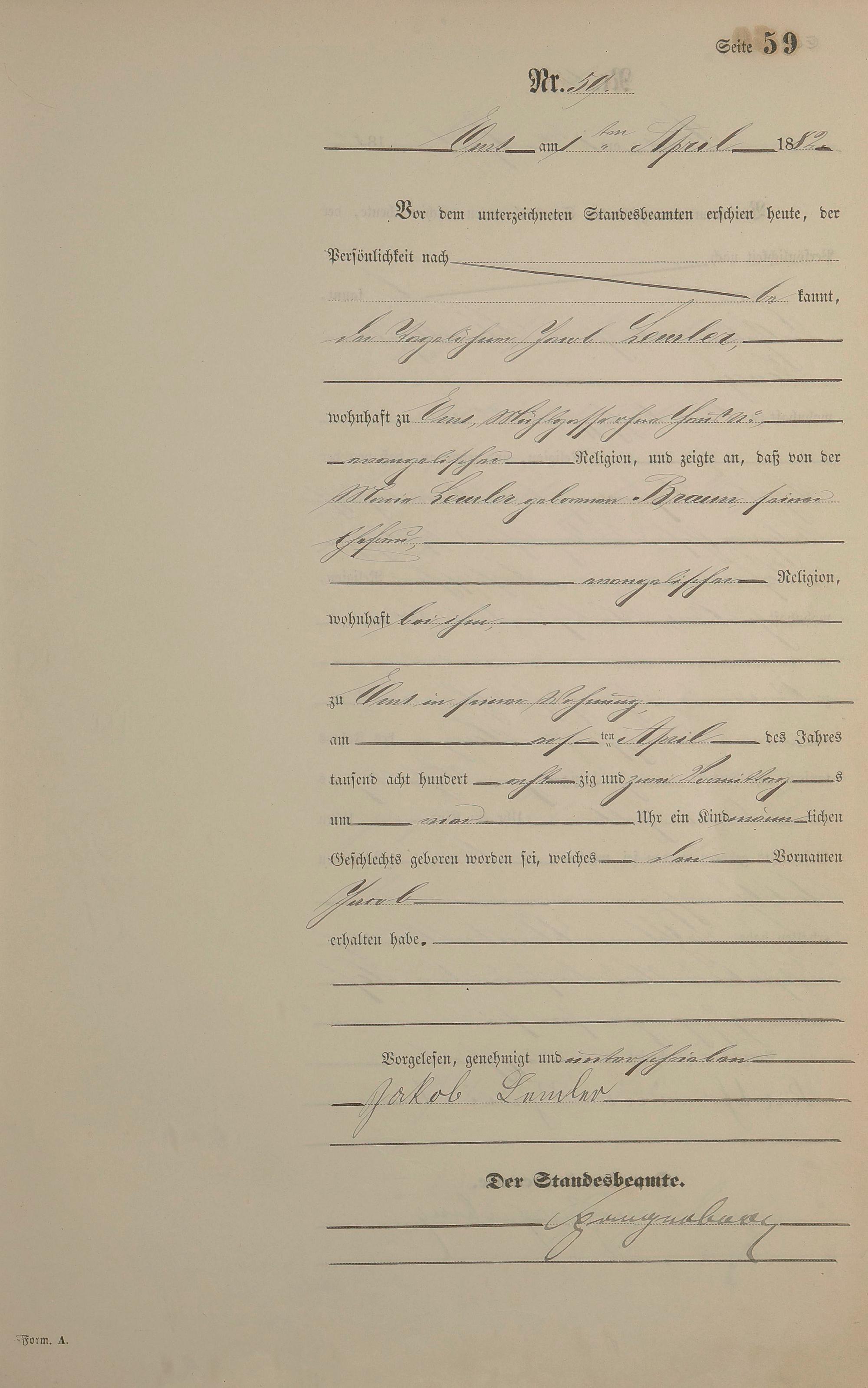 Geburtsregister 1882