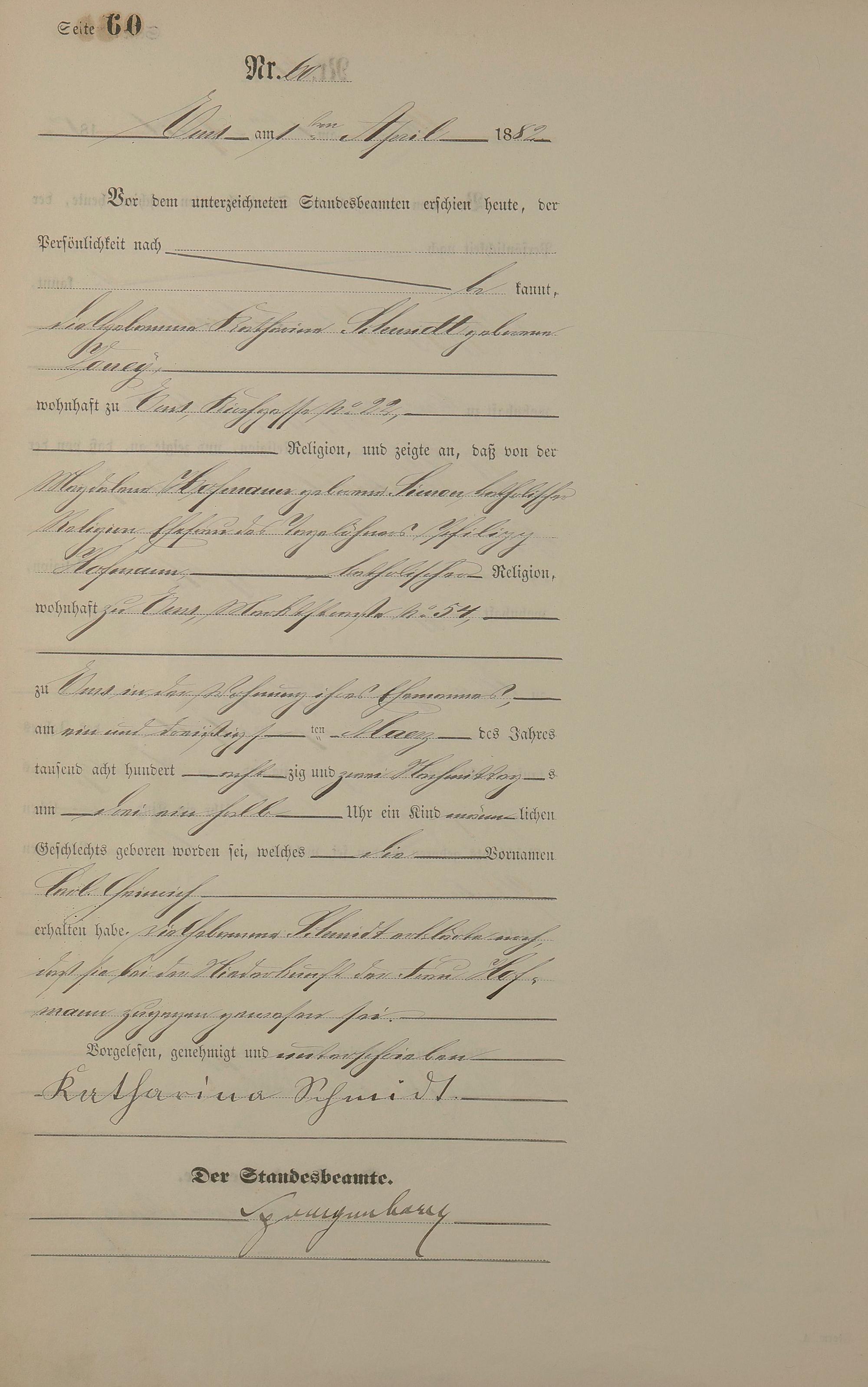 Geburtsregister 1882