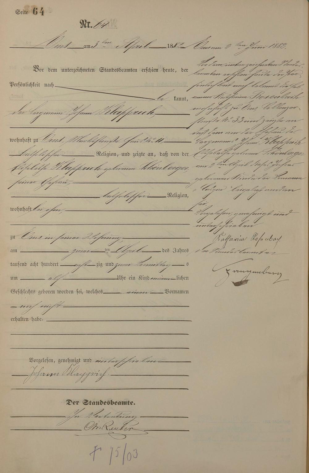 Geburtsregister 1882