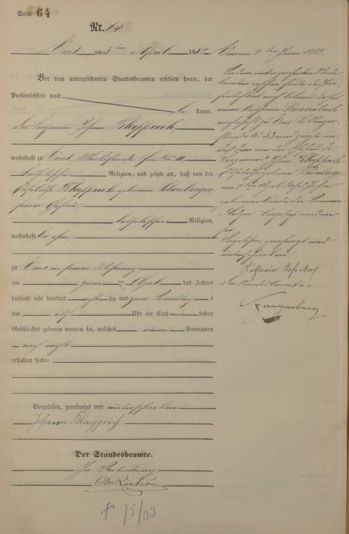1258: Geburtsregister 1882
