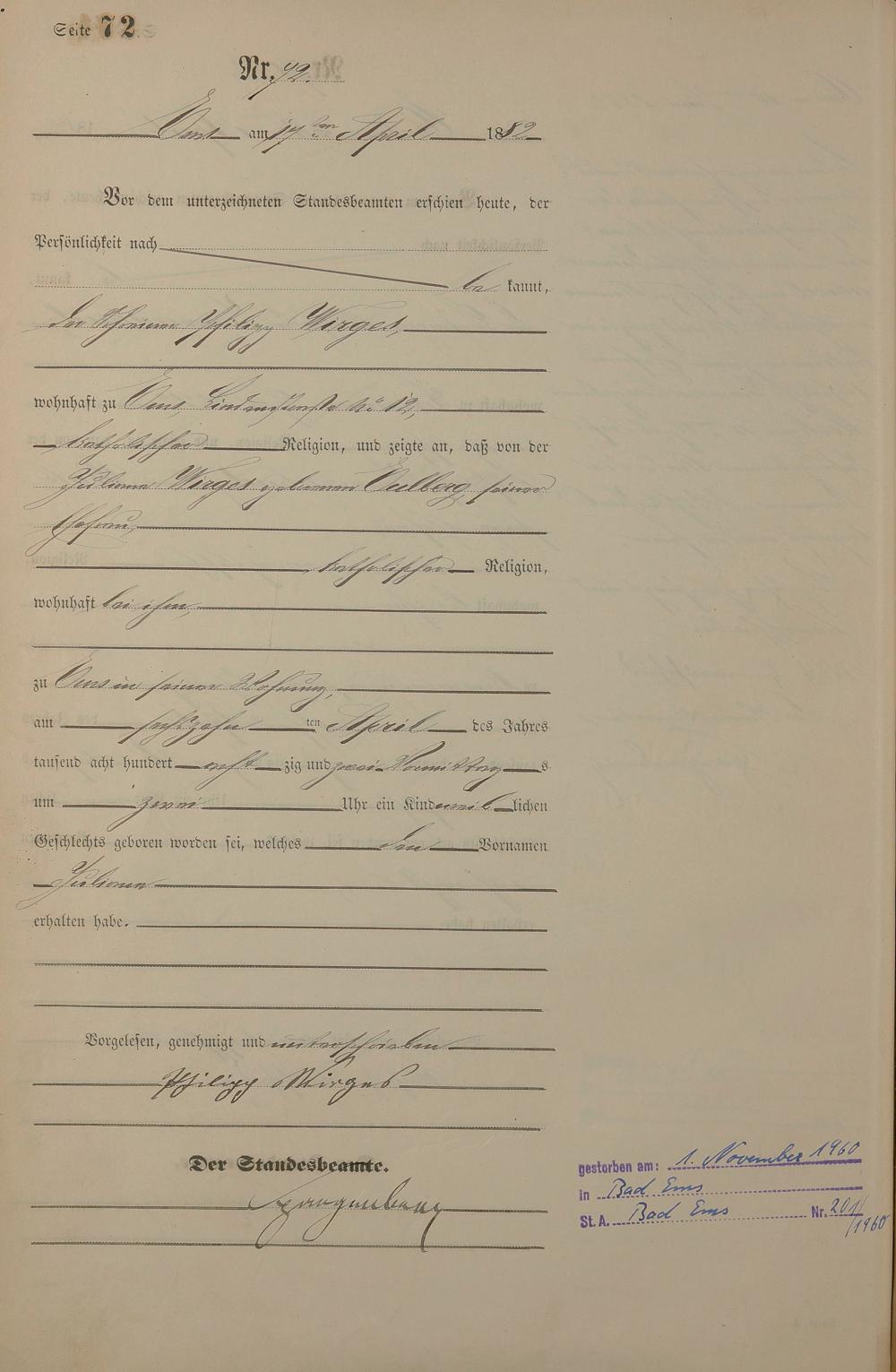 Geburtsregister 1882