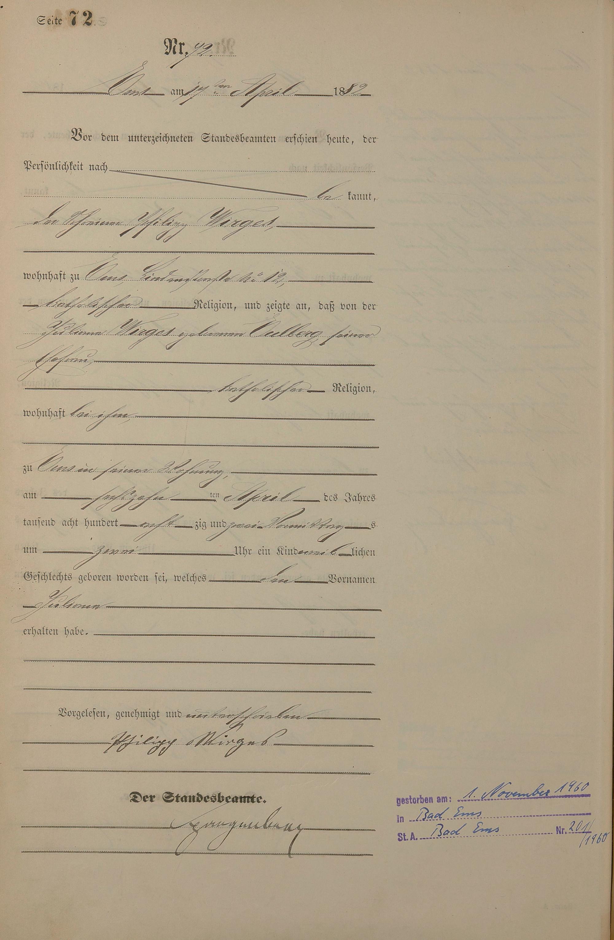 1258: Geburtsregister 1882