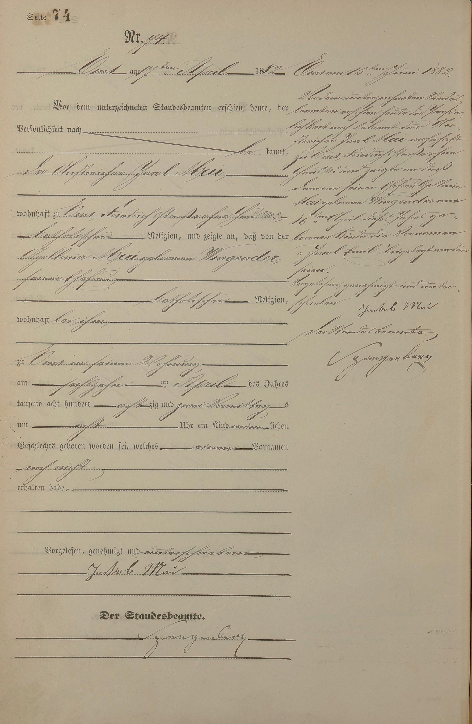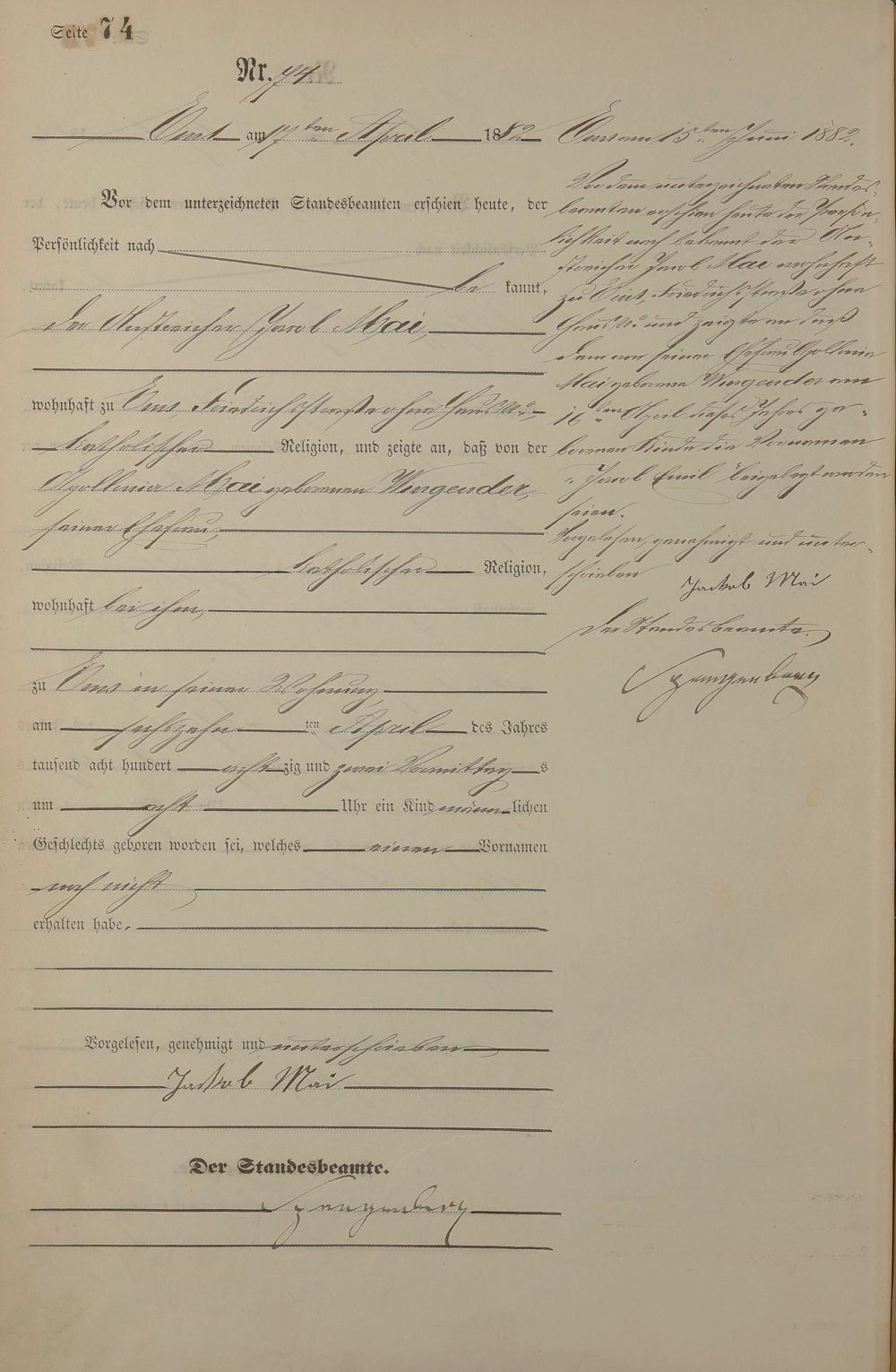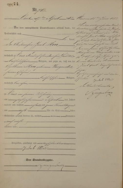 Geburtsregister 1882
