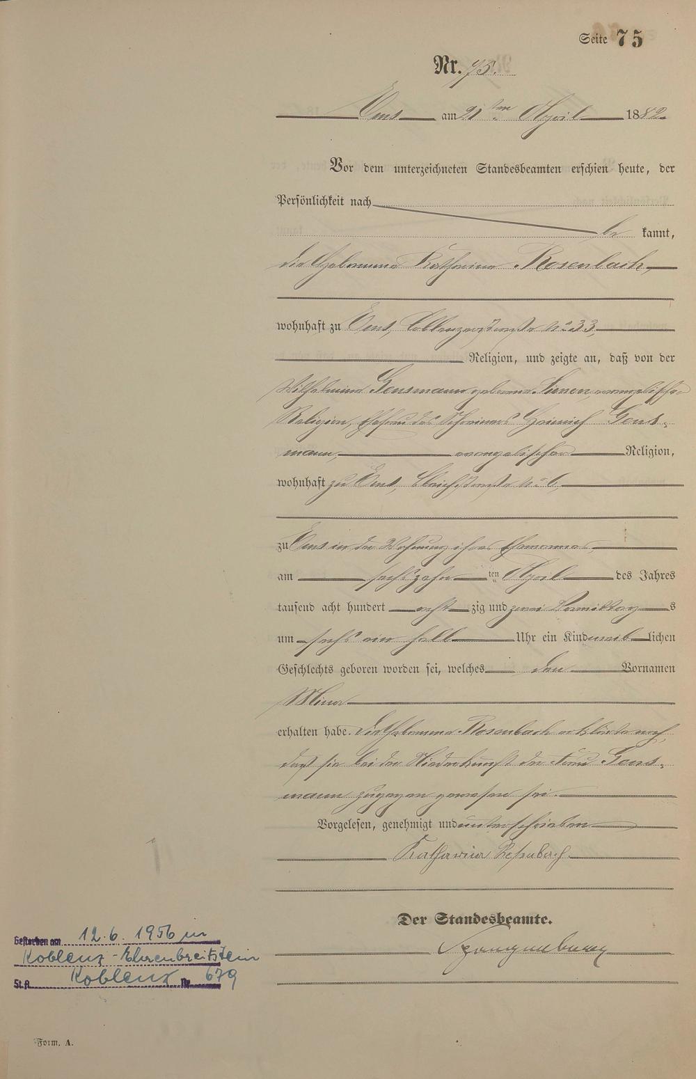 Geburtsregister 1882