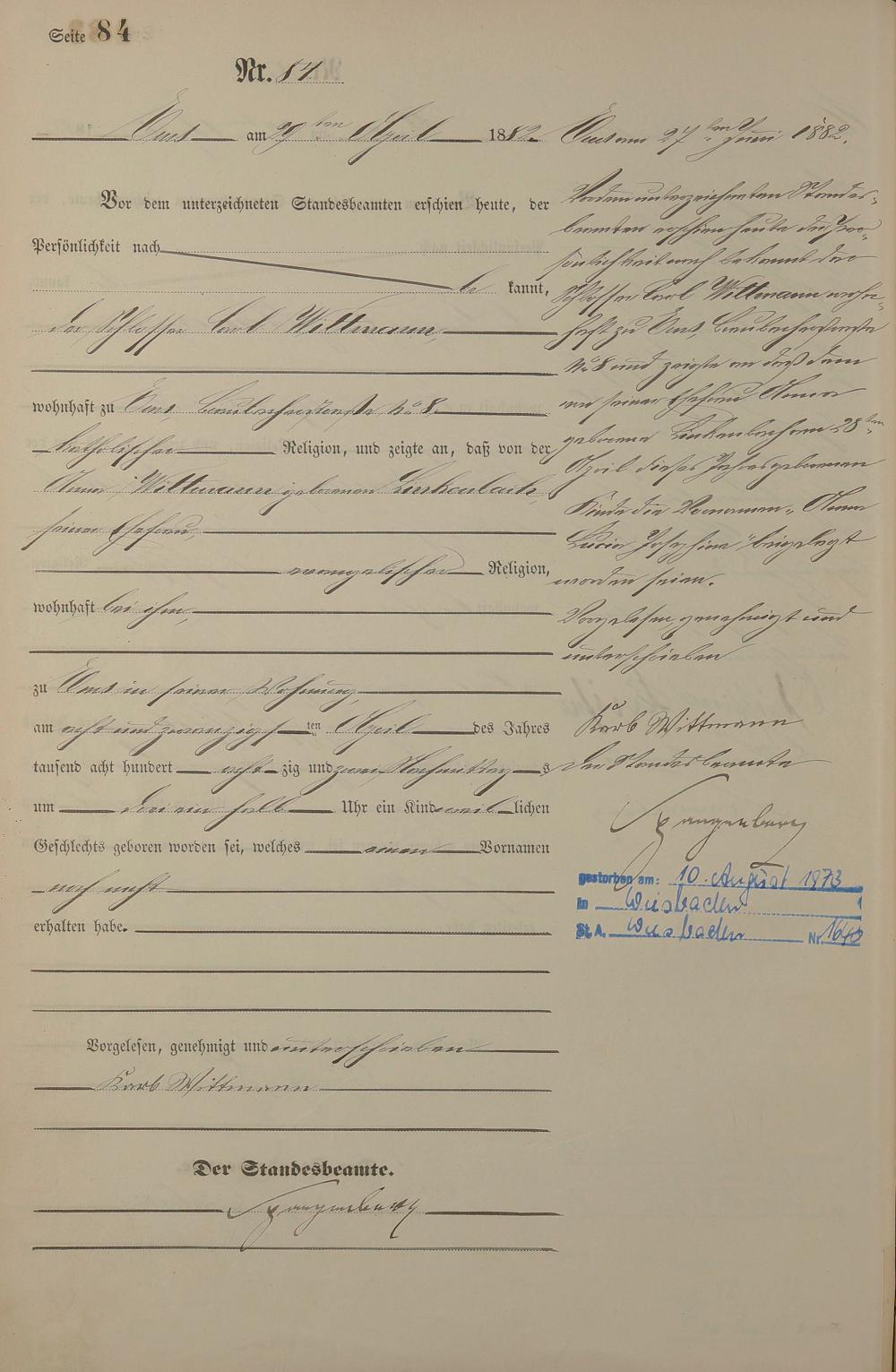 Geburtsregister 1882