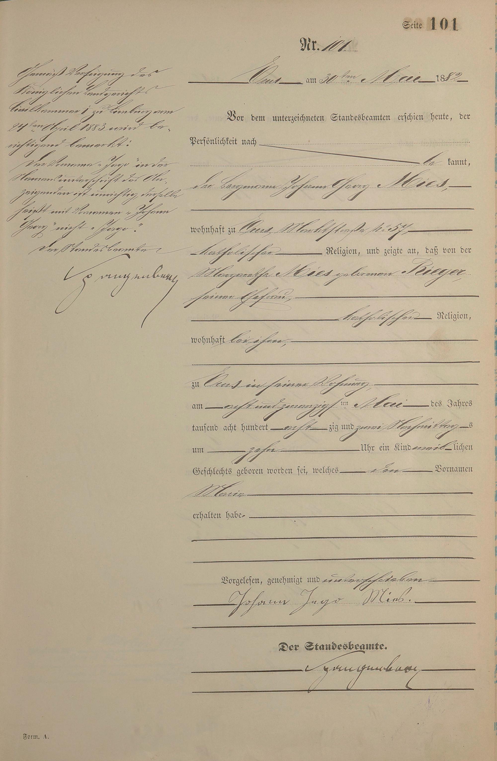 Geburtsregister 1882