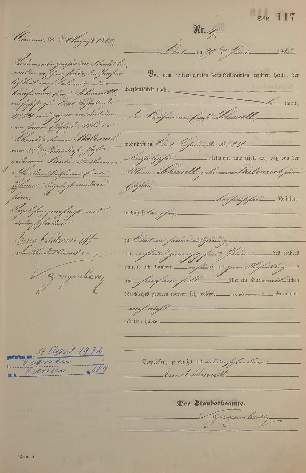 Geburtsregister 1882