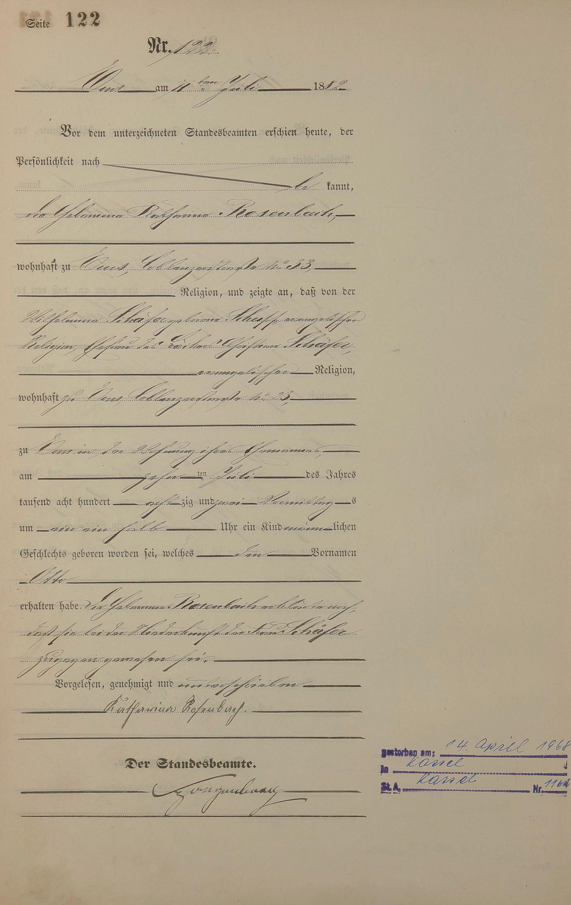 Geburtsregister 1882