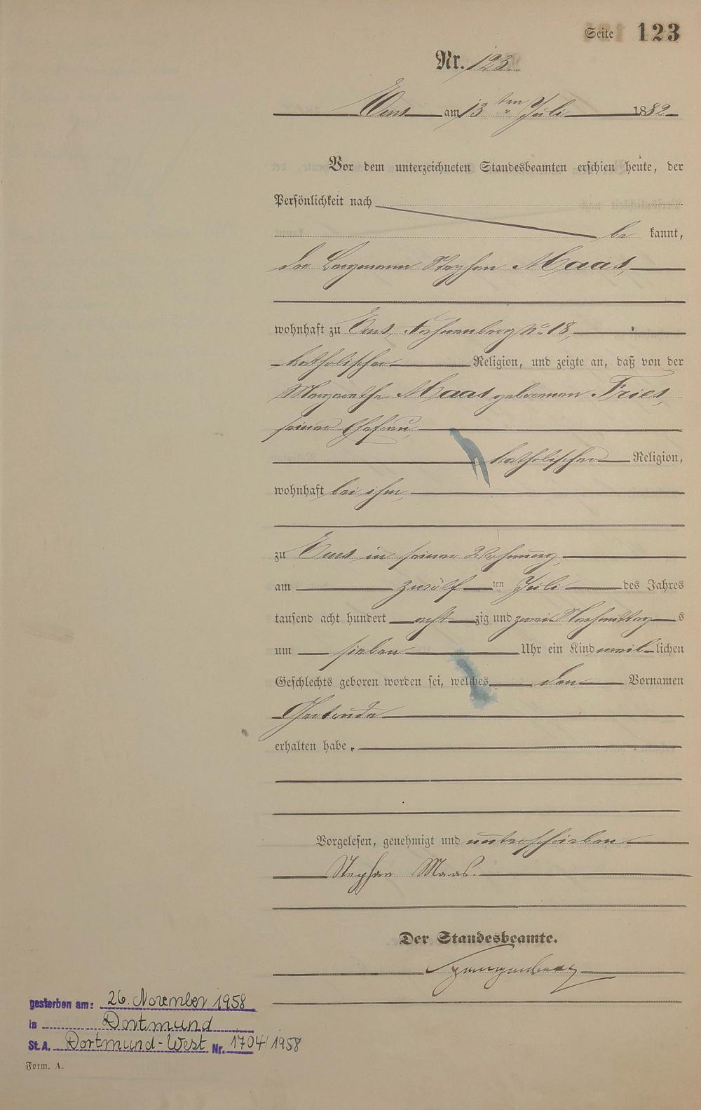 Geburtsregister 1882