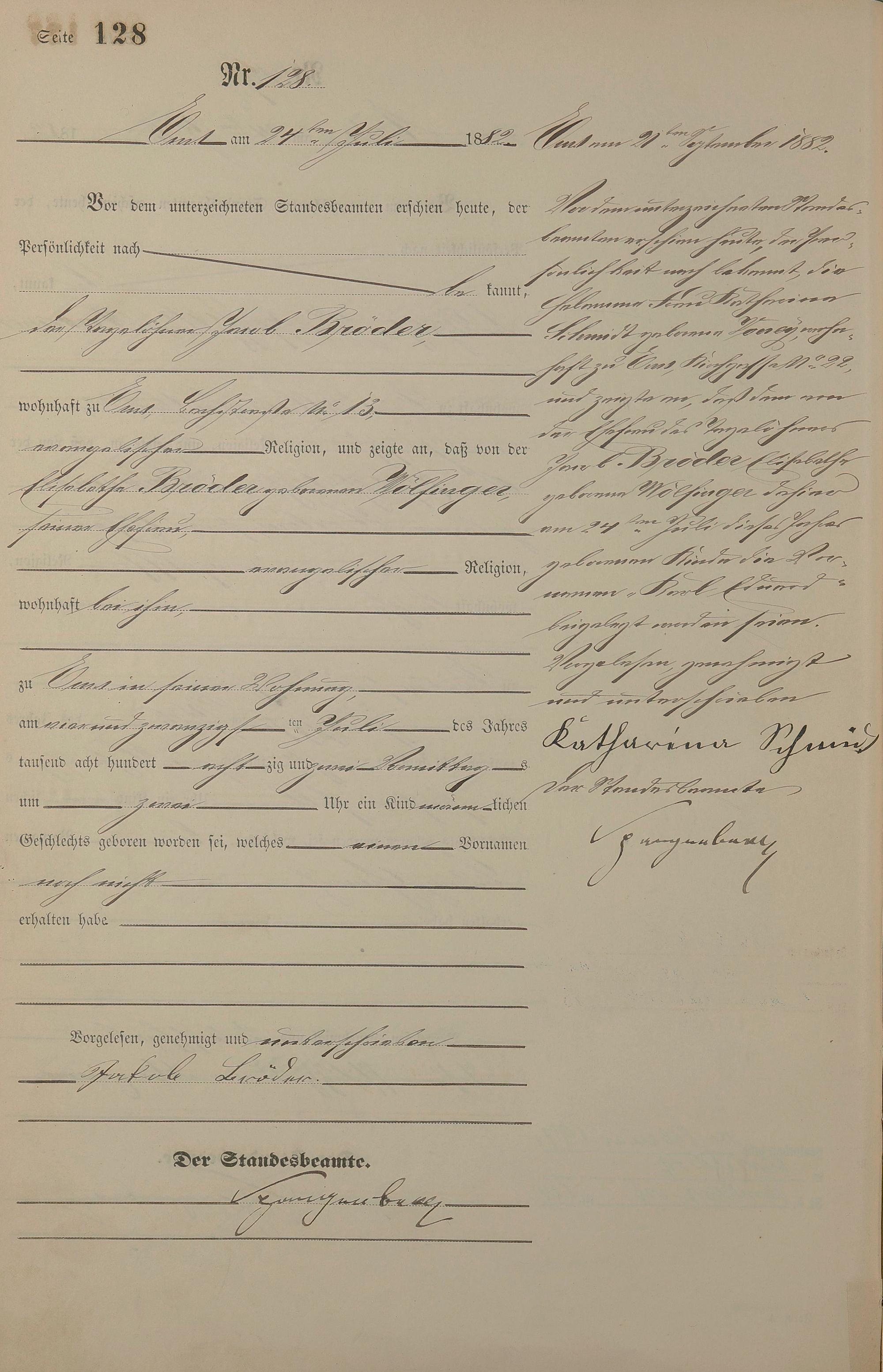 Geburtsregister 1882