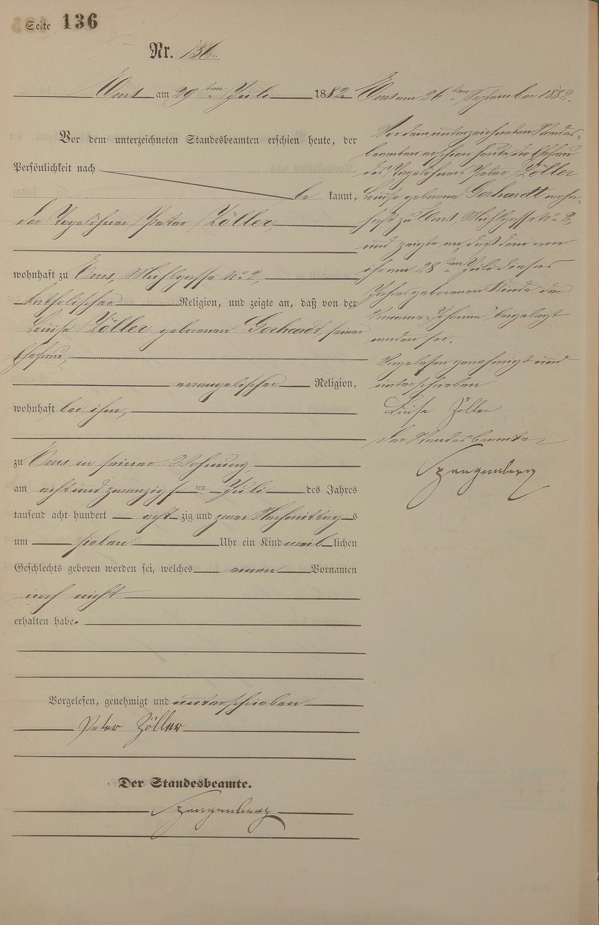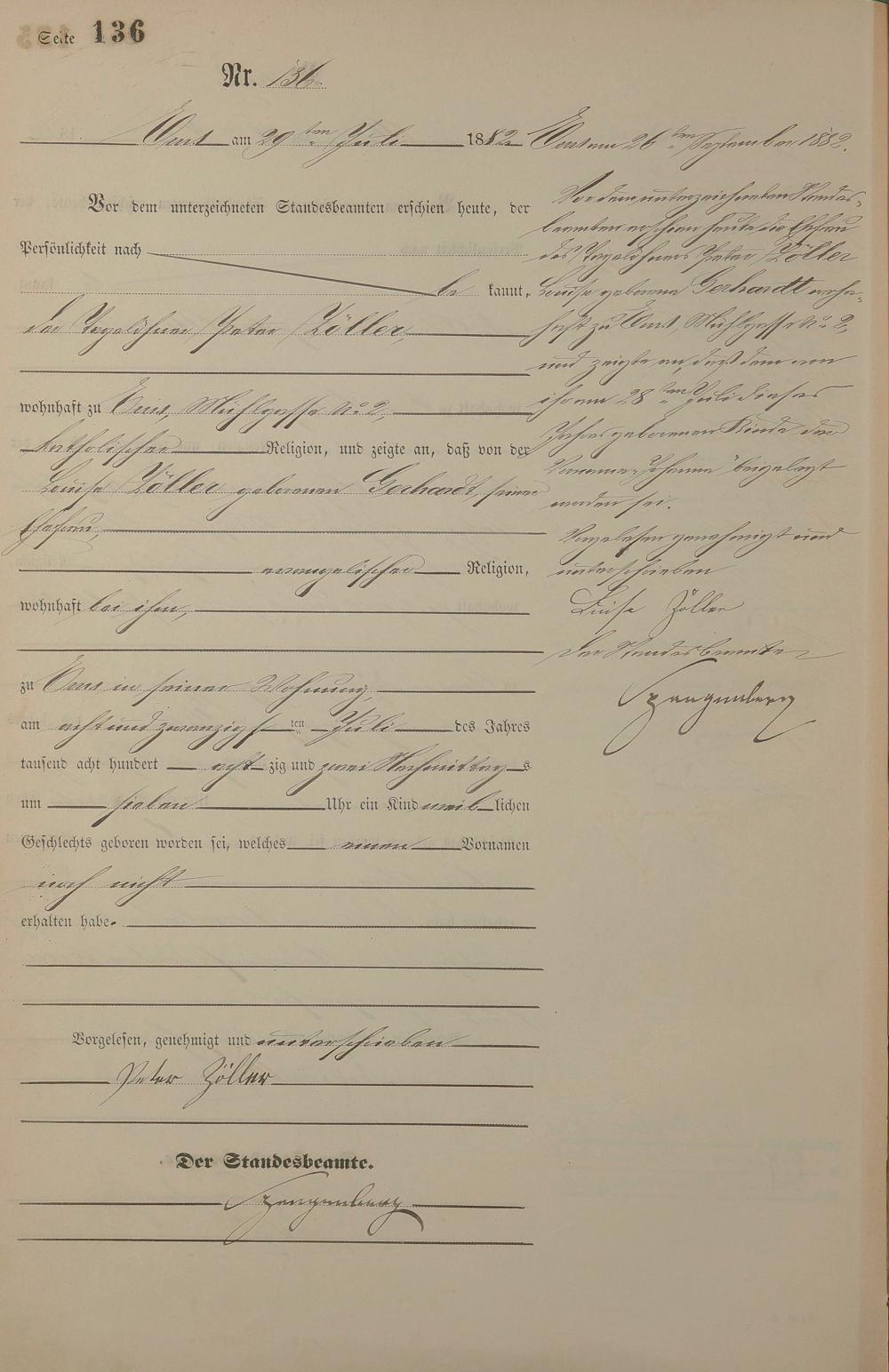 Geburtsregister 1882