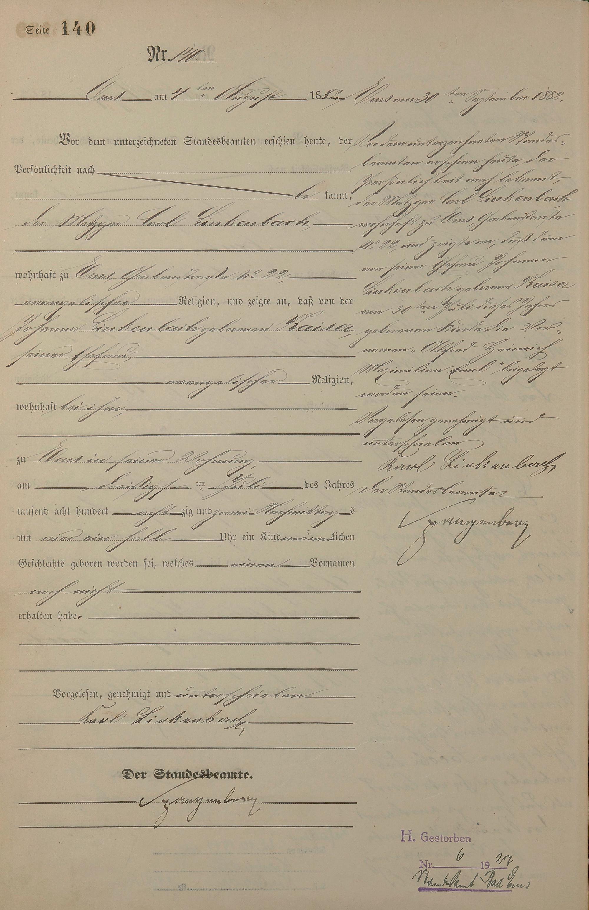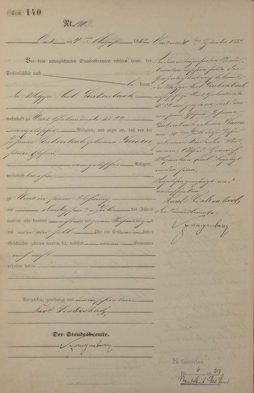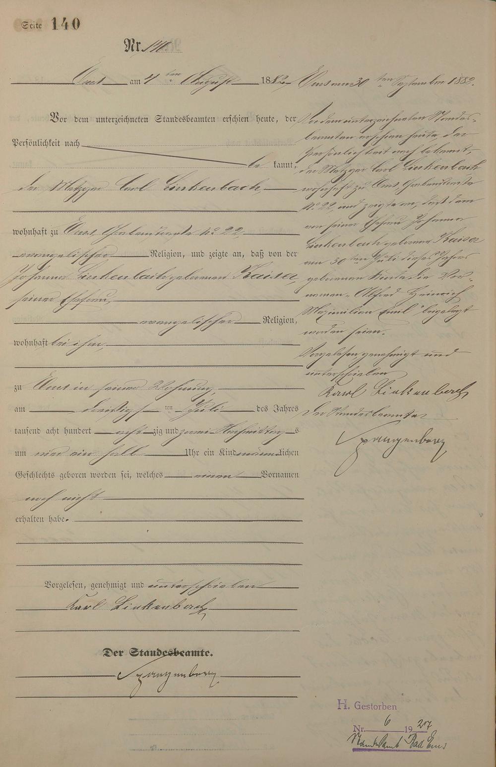 Geburtsregister 1882