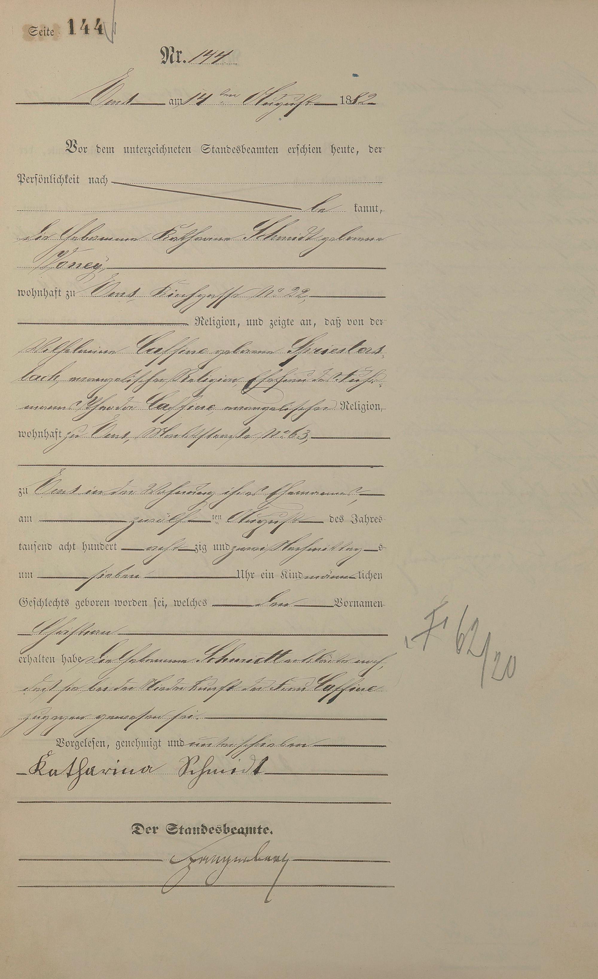Geburtsregister 1882