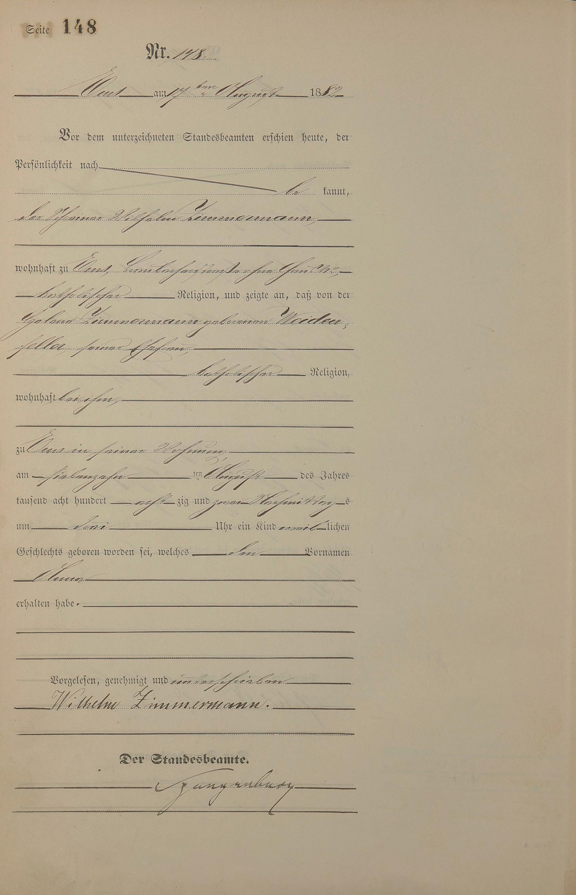 Geburtsregister 1882