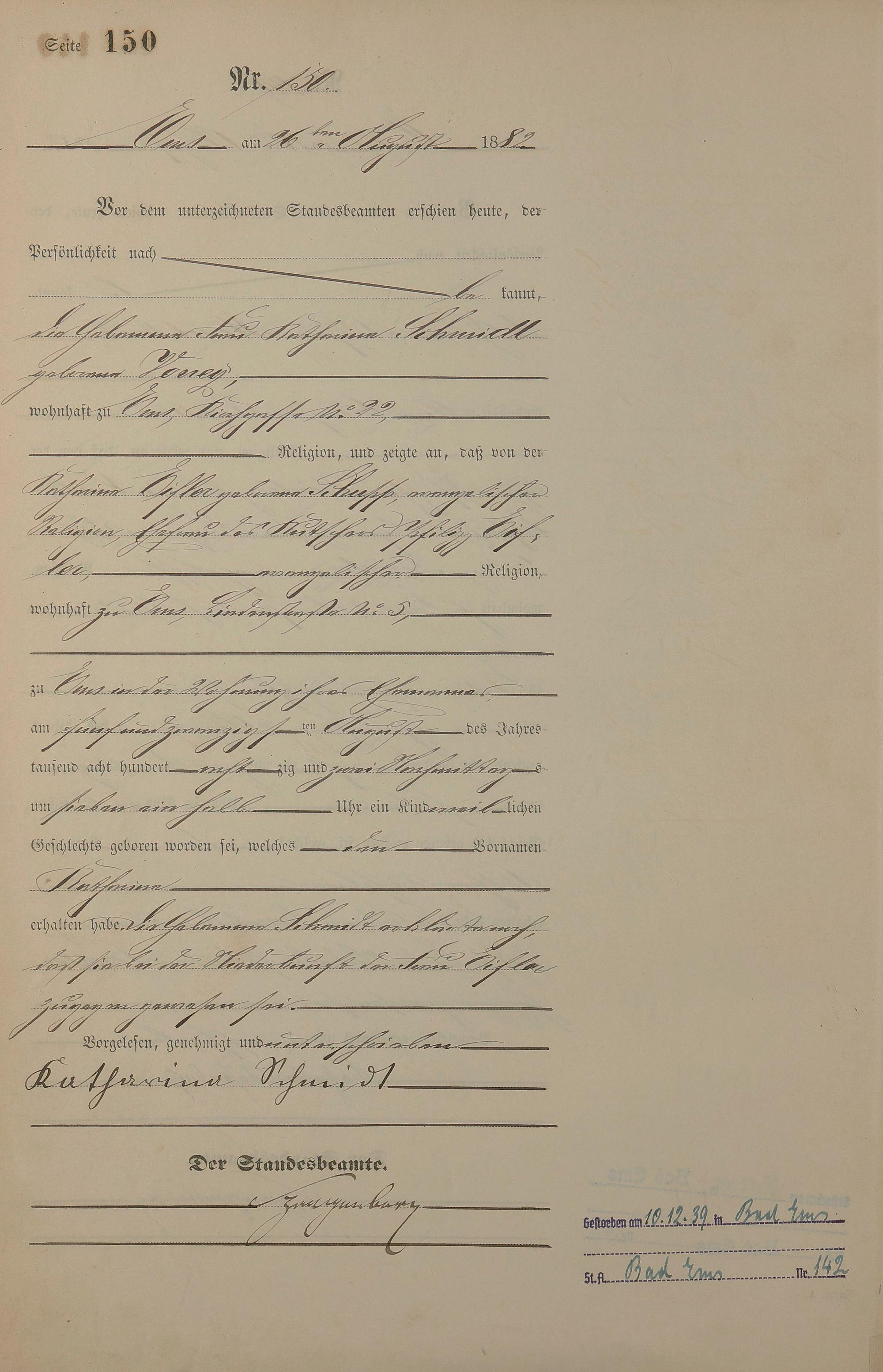 Geburtsregister 1882