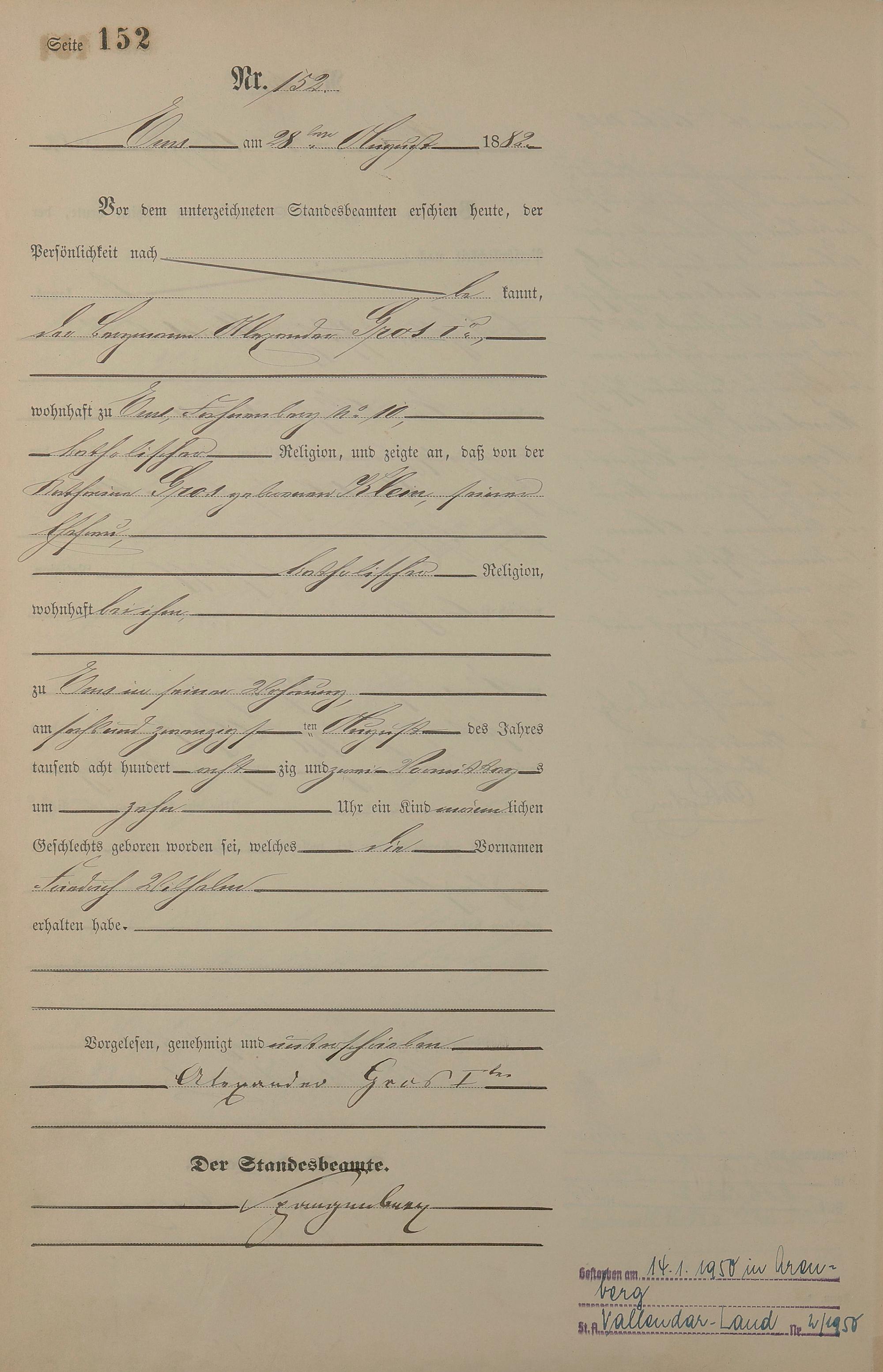 Geburtsregister 1882