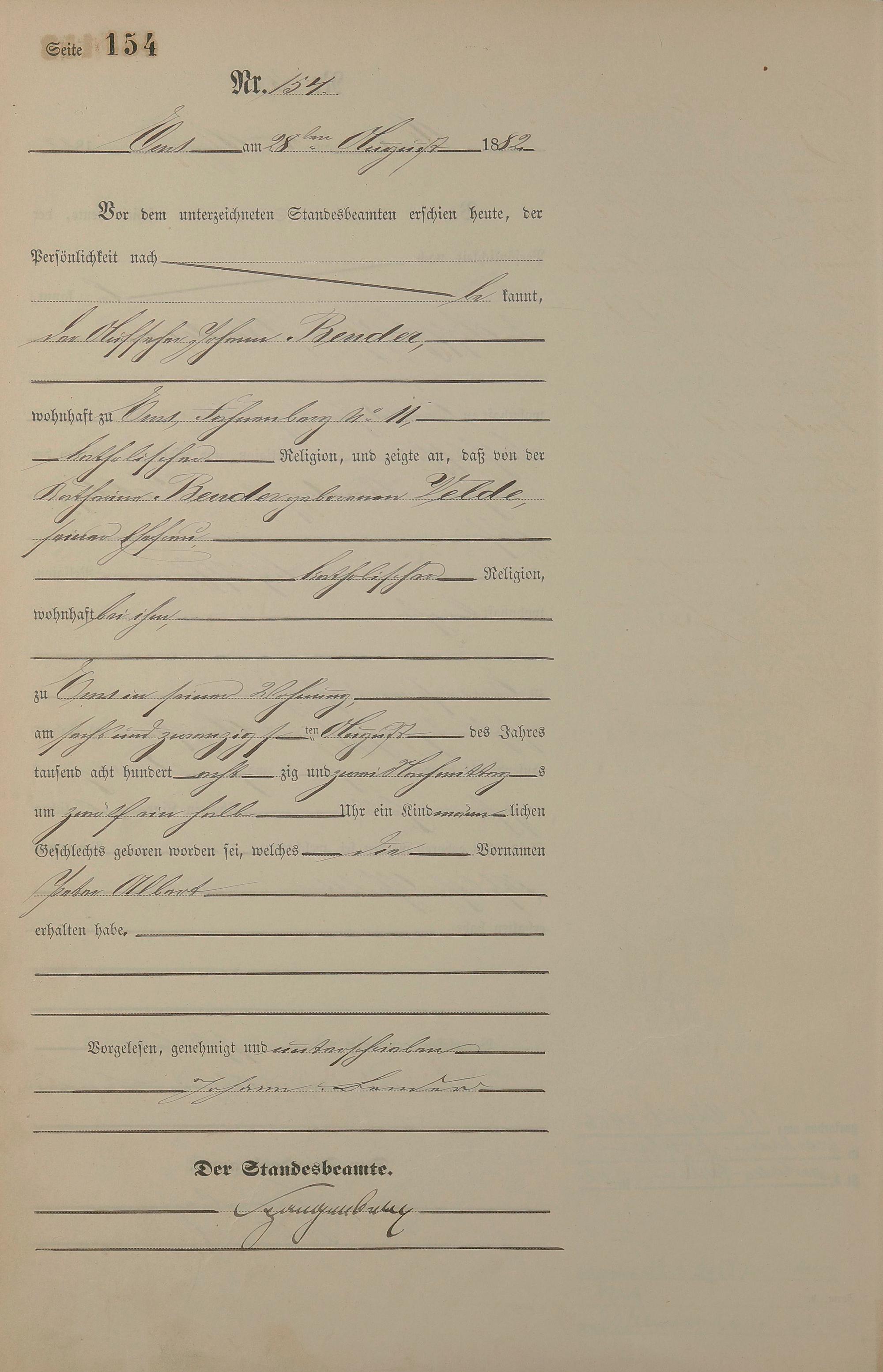 Geburtsregister 1882
