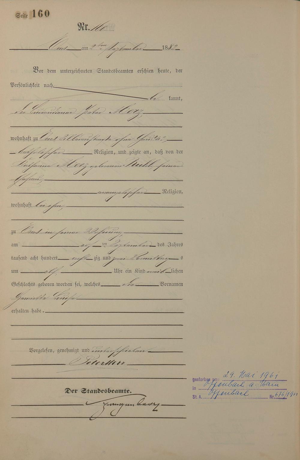 Geburtsregister 1882