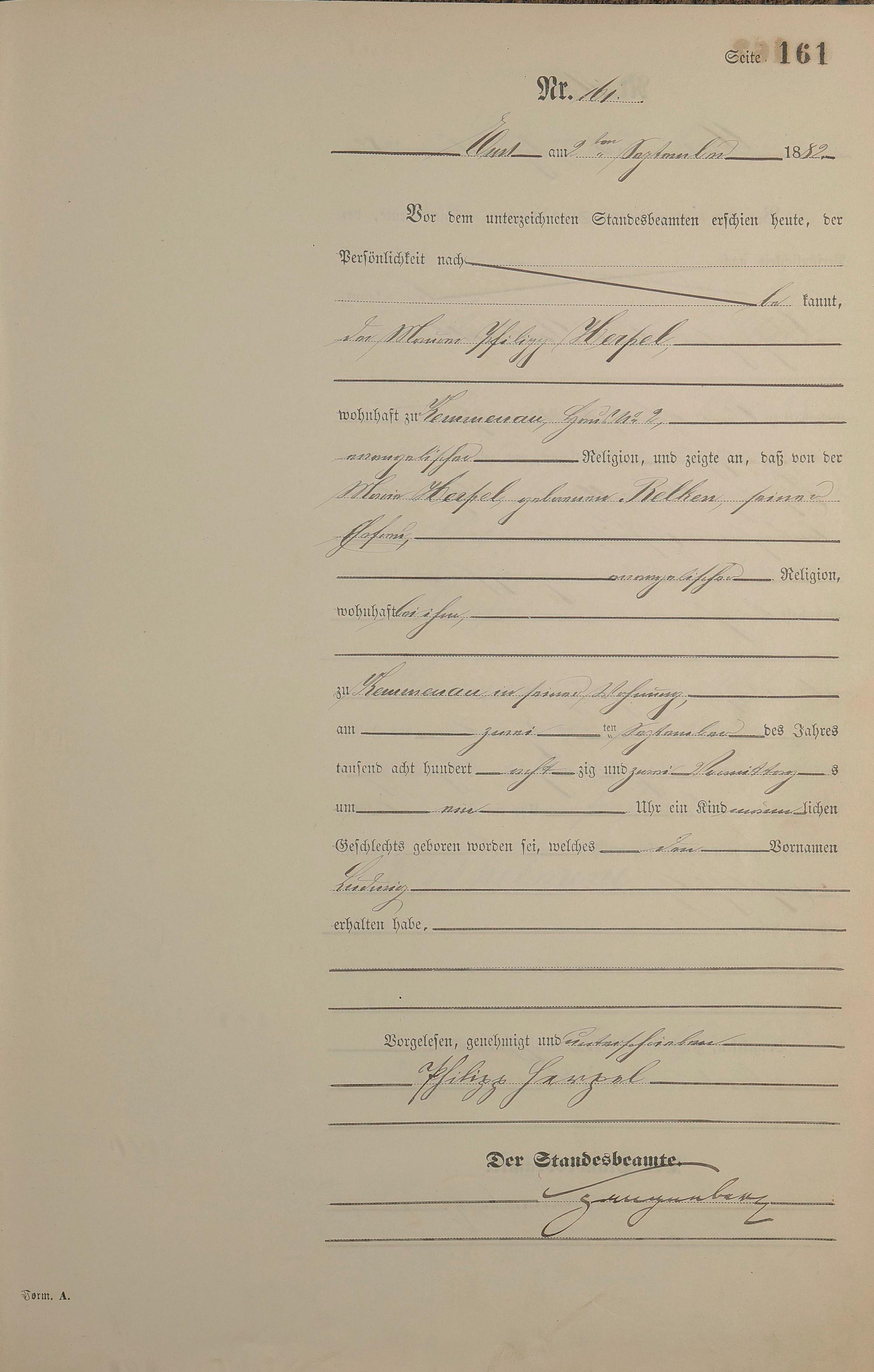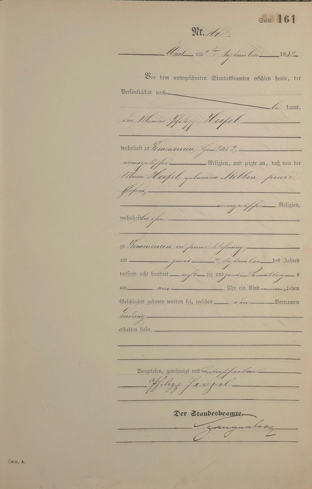 Geburtsregister 1882