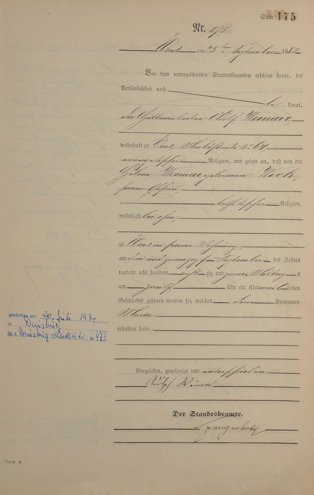 Geburtsregister 1882