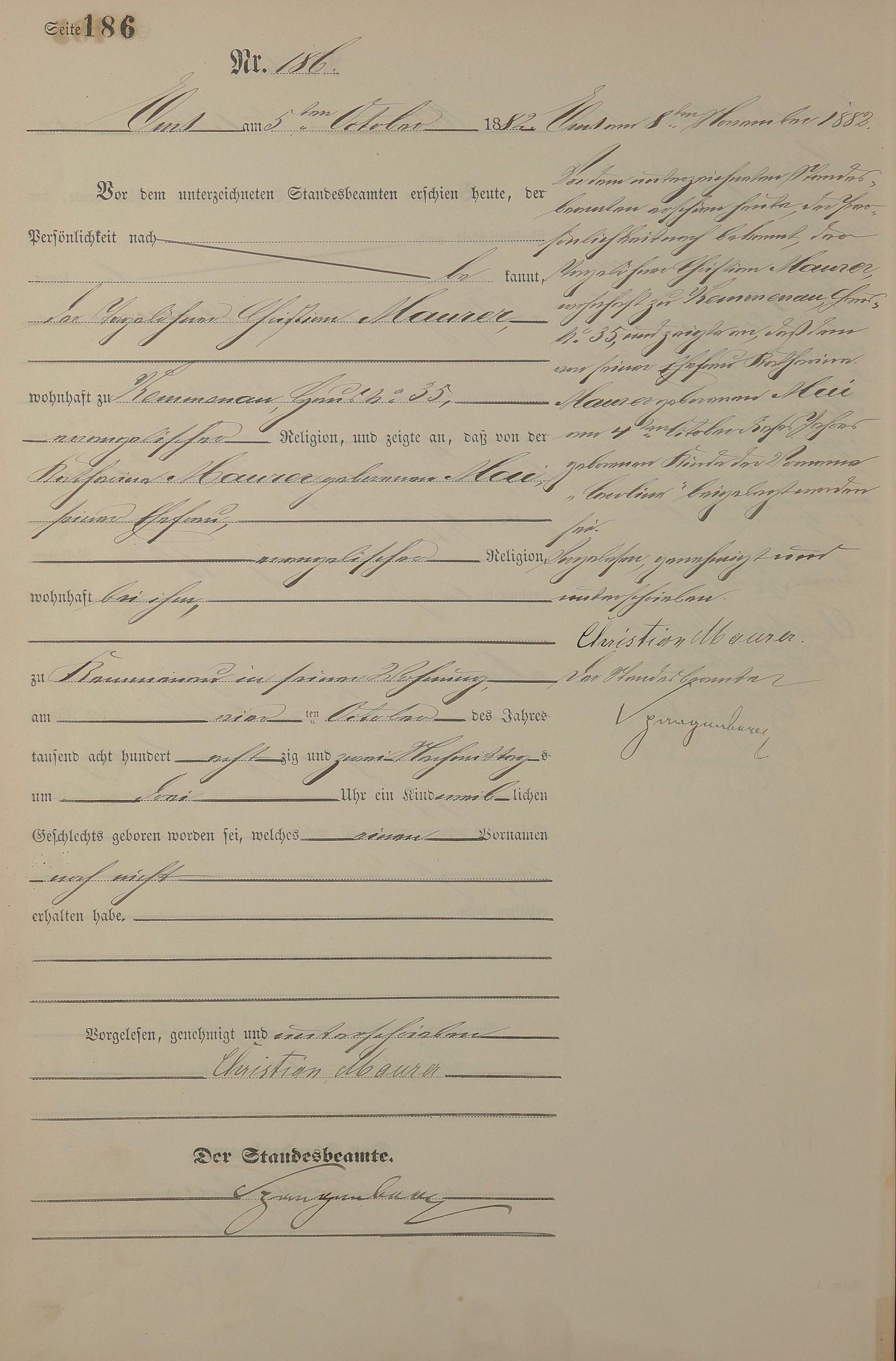 Geburtsregister 1882