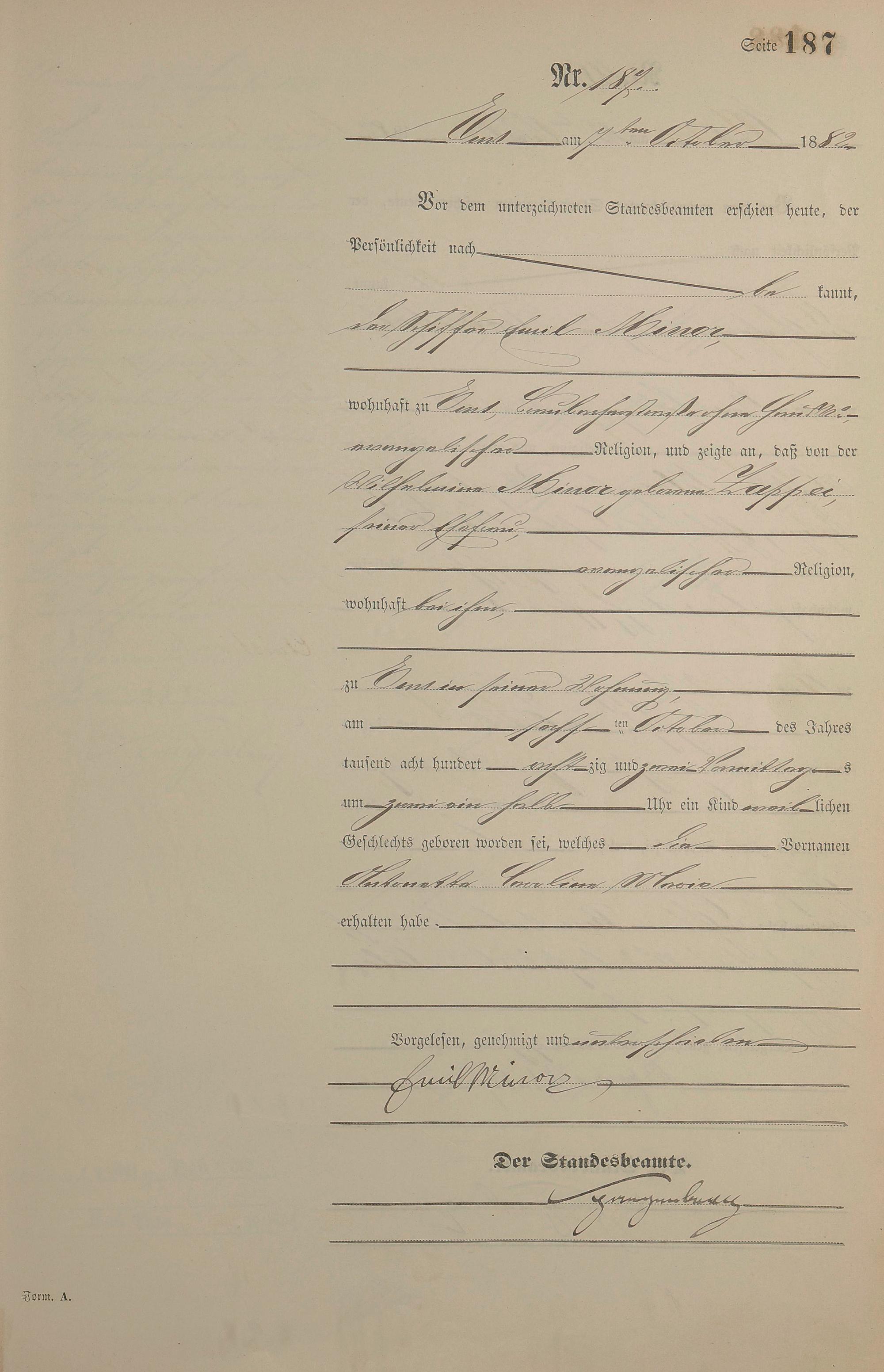 Geburtsregister 1882