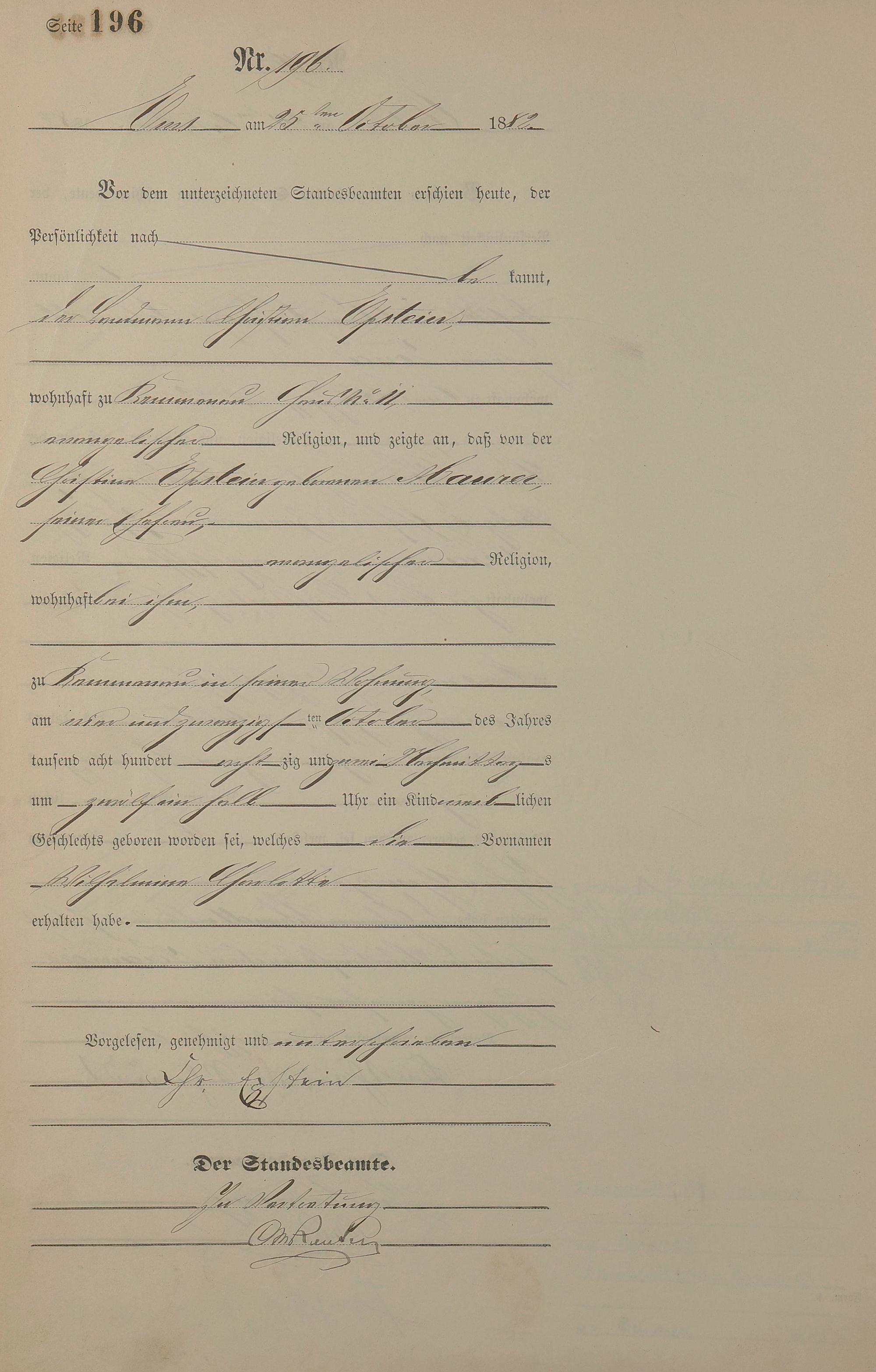 Geburtsregister 1882