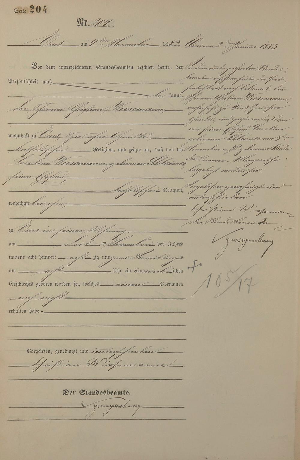 Geburtsregister 1882