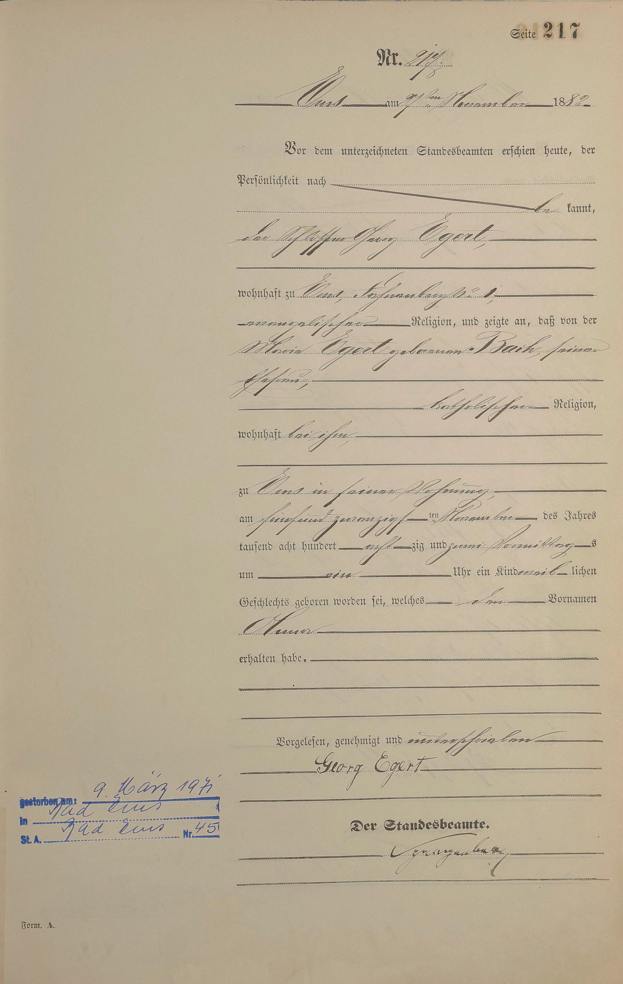 Geburtsregister 1882