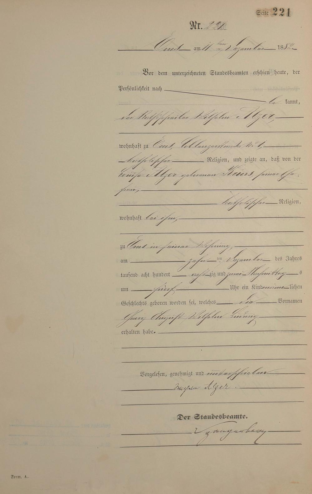 Geburtsregister 1882
