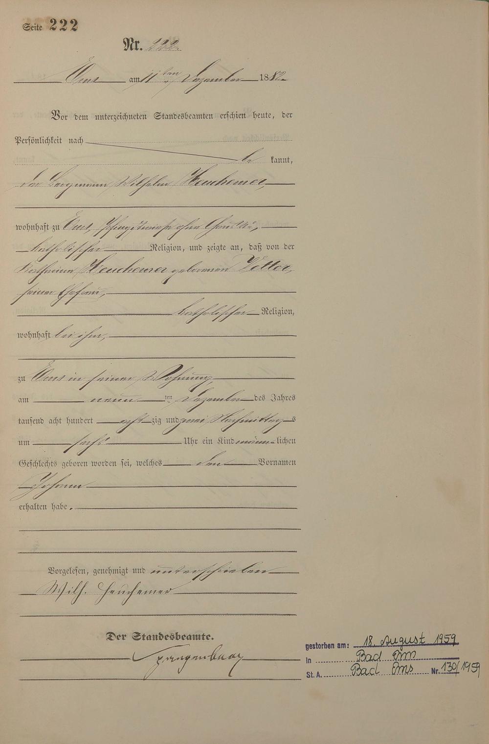Geburtsregister 1882