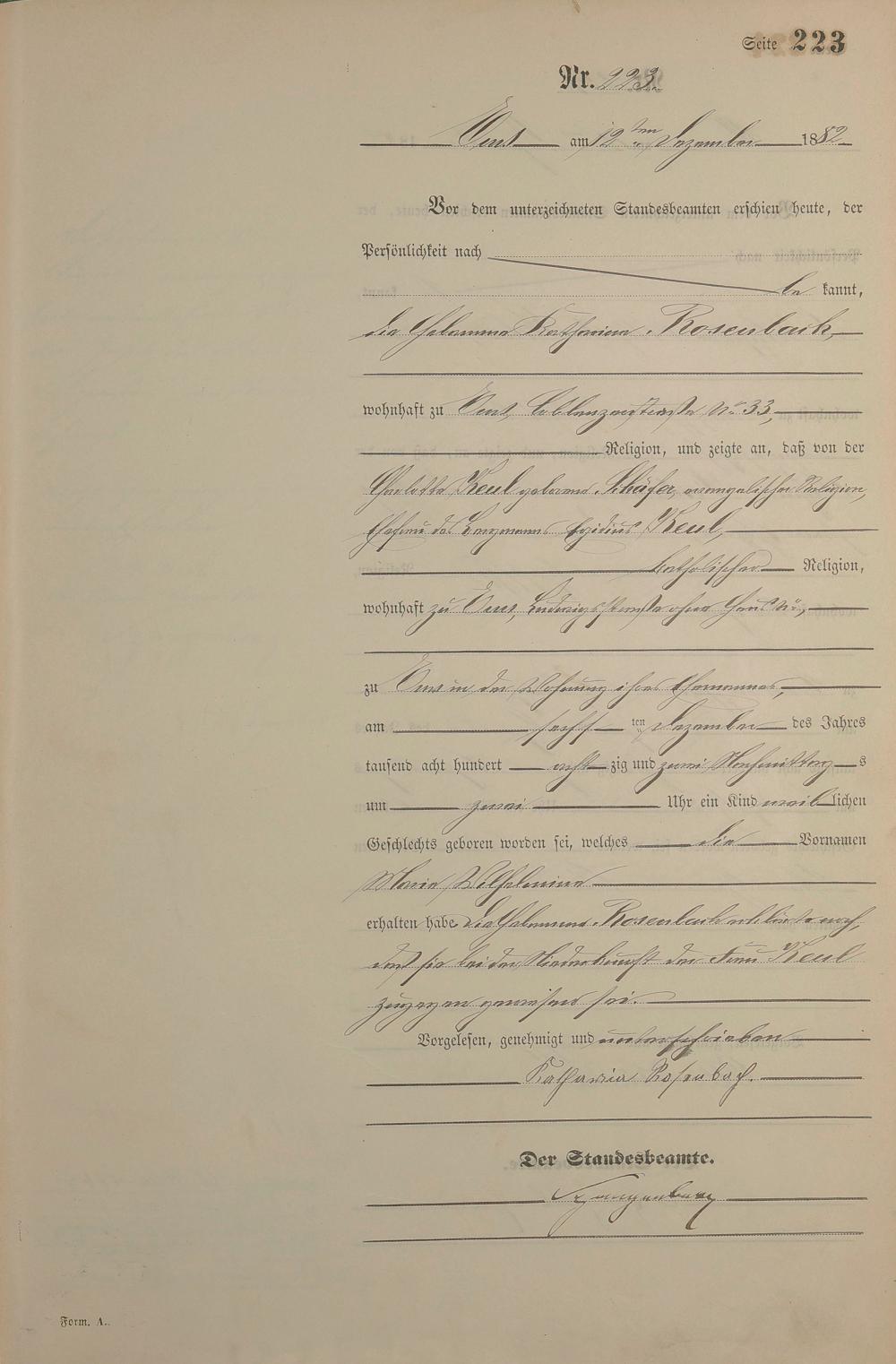Geburtsregister 1882